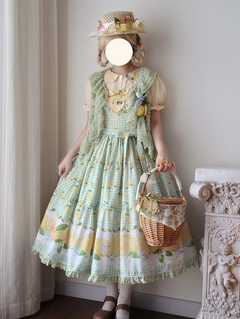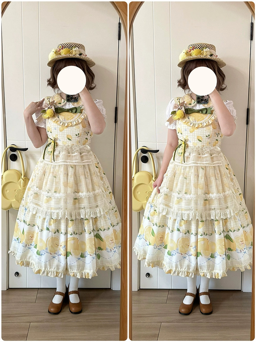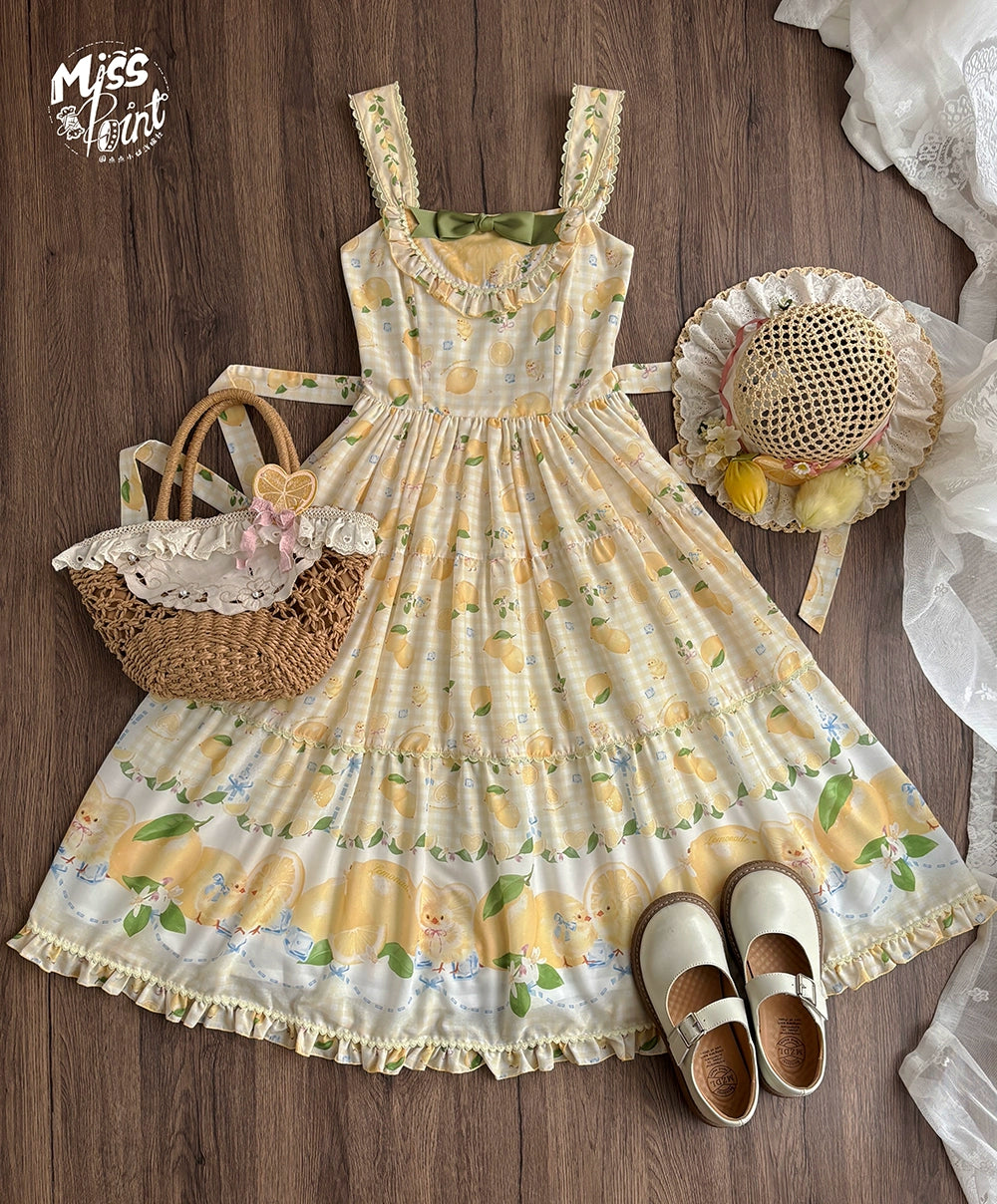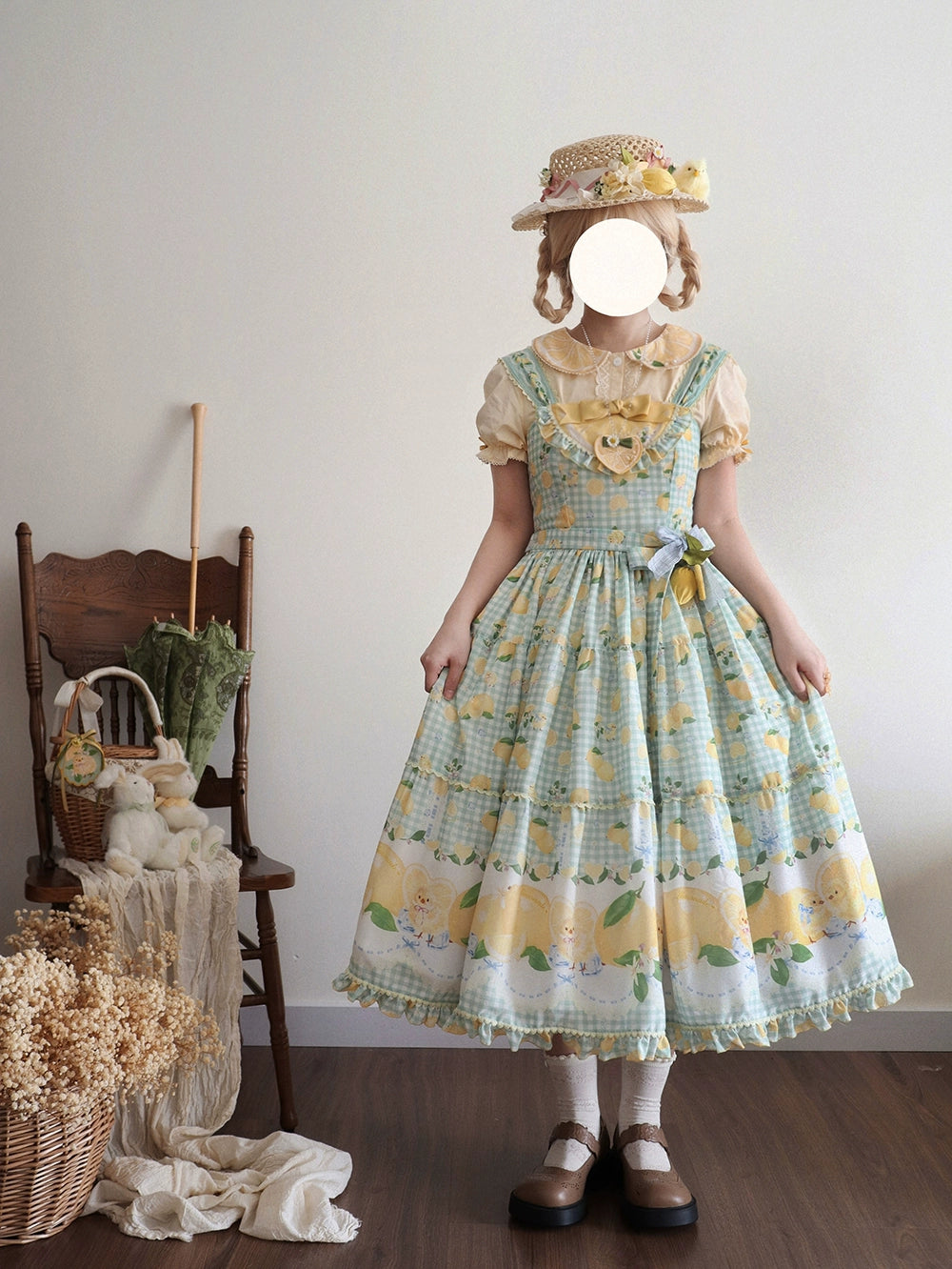 【受注予約5/14まで】Lemon Sweetie プリントジャンパースカート・ロング丈