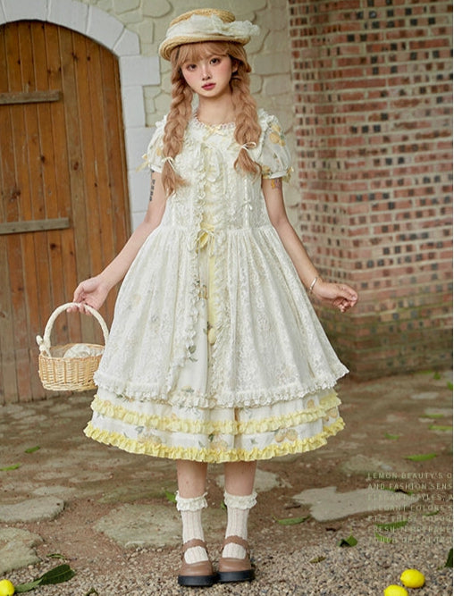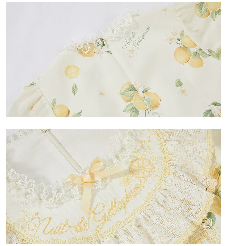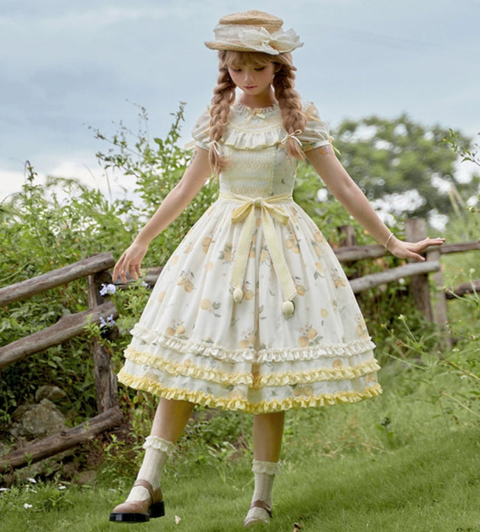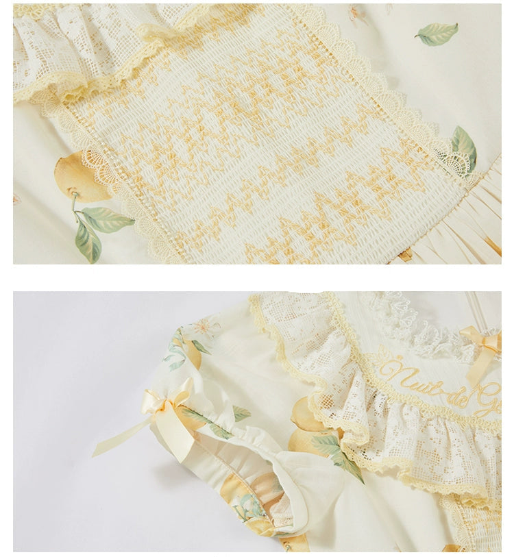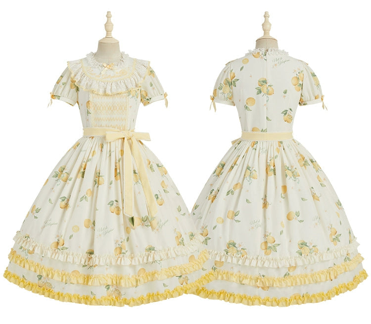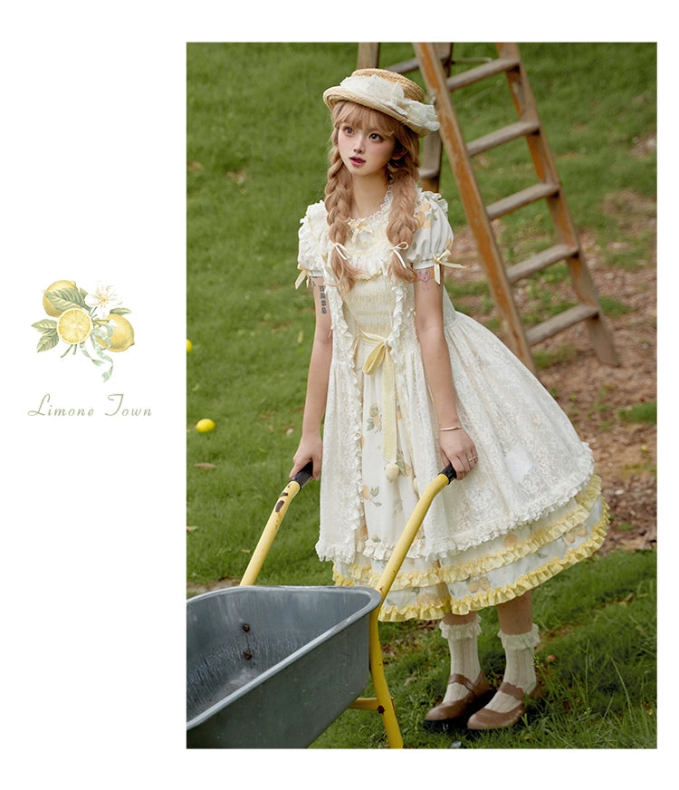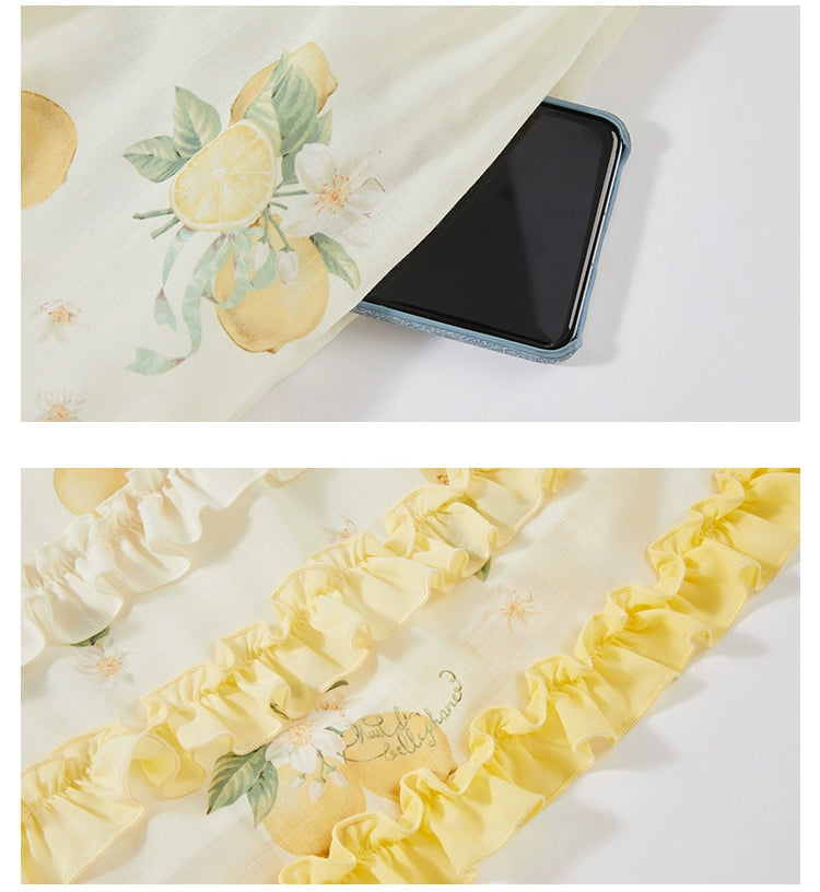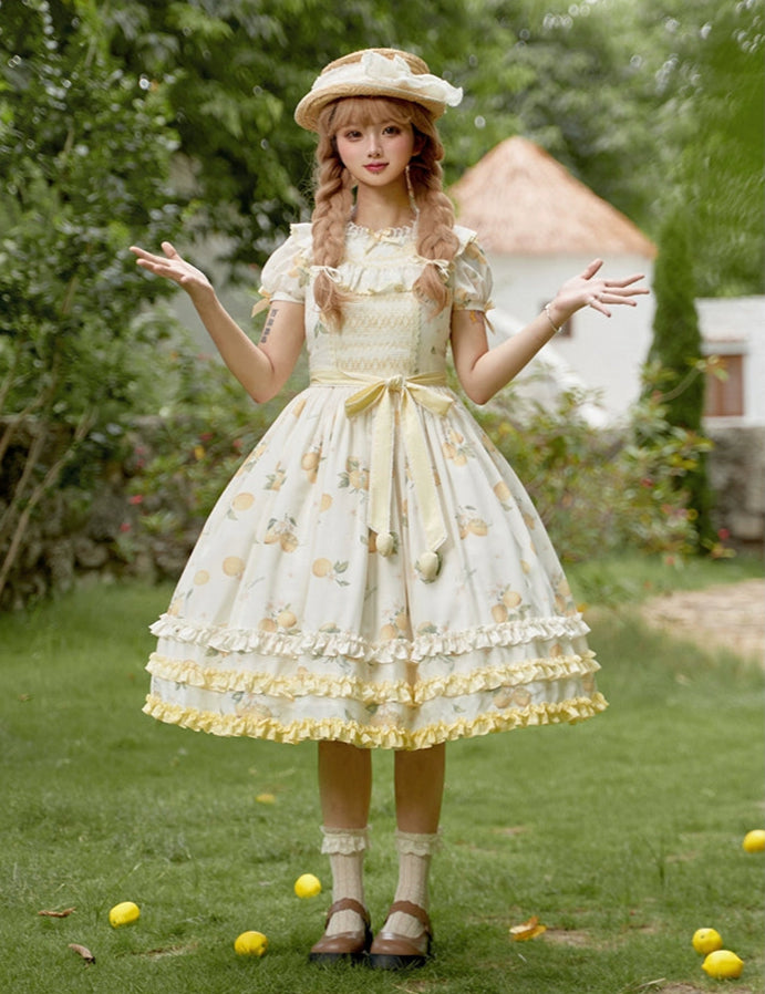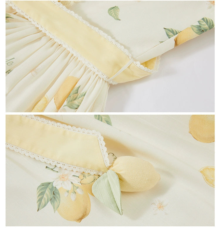 レモンプリントがさわやかなワンピース。別売りのエプロンを合わせてもかわいい♡