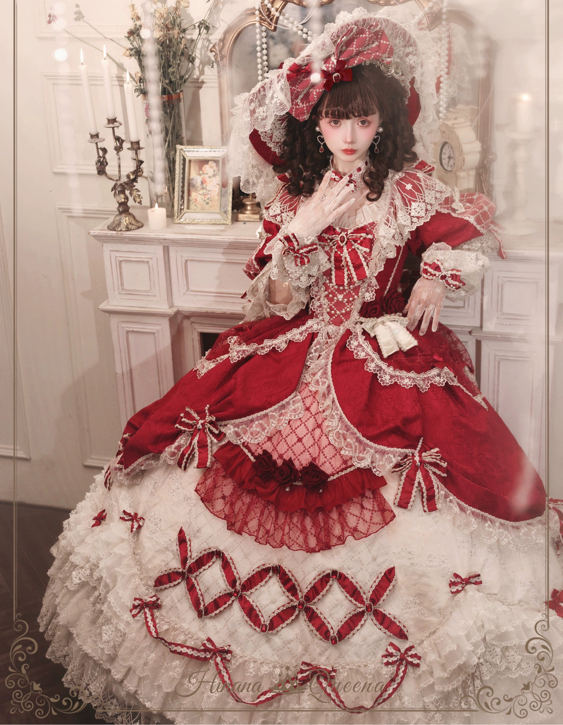 レースとフリルたっぷりのラグジュアリーなプリンセスドレス。レッドは華やかで情熱的な雰囲気に。