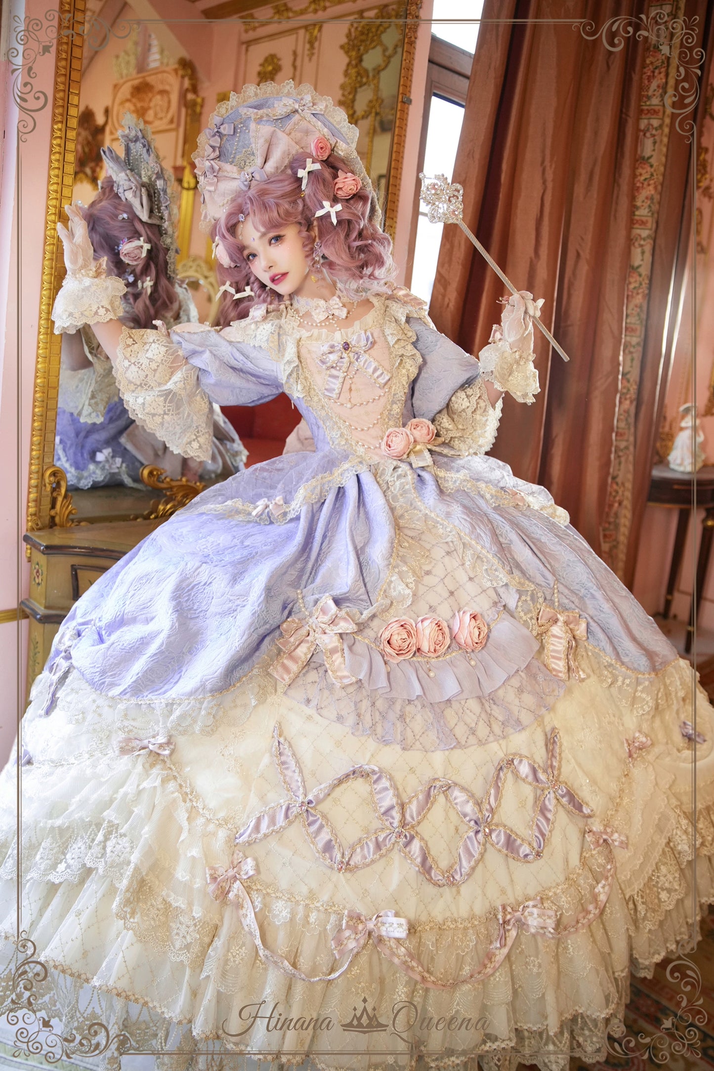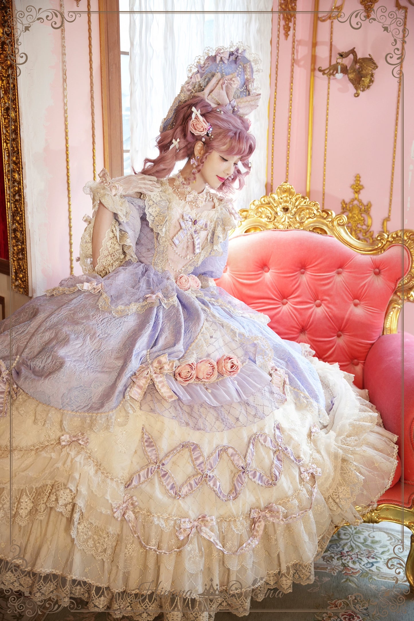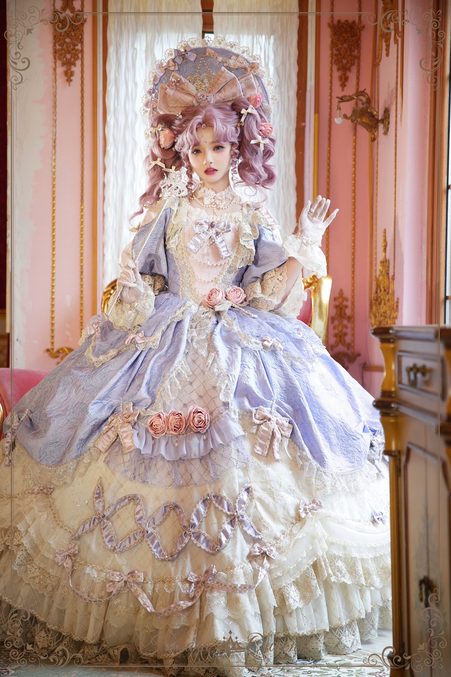 レースとフリルたっぷりのラグジュアリーなプリンセスドレス。パープルは大人っぽく上品な雰囲気に。