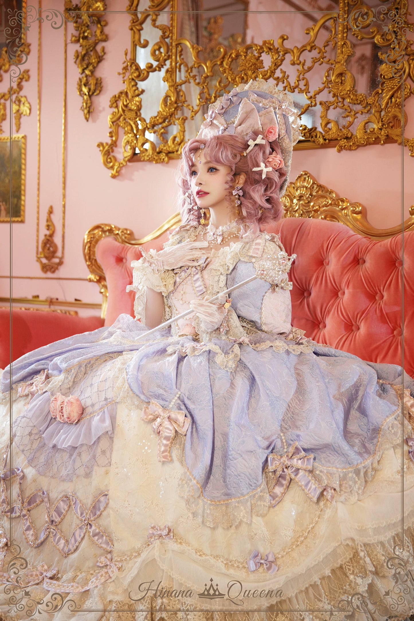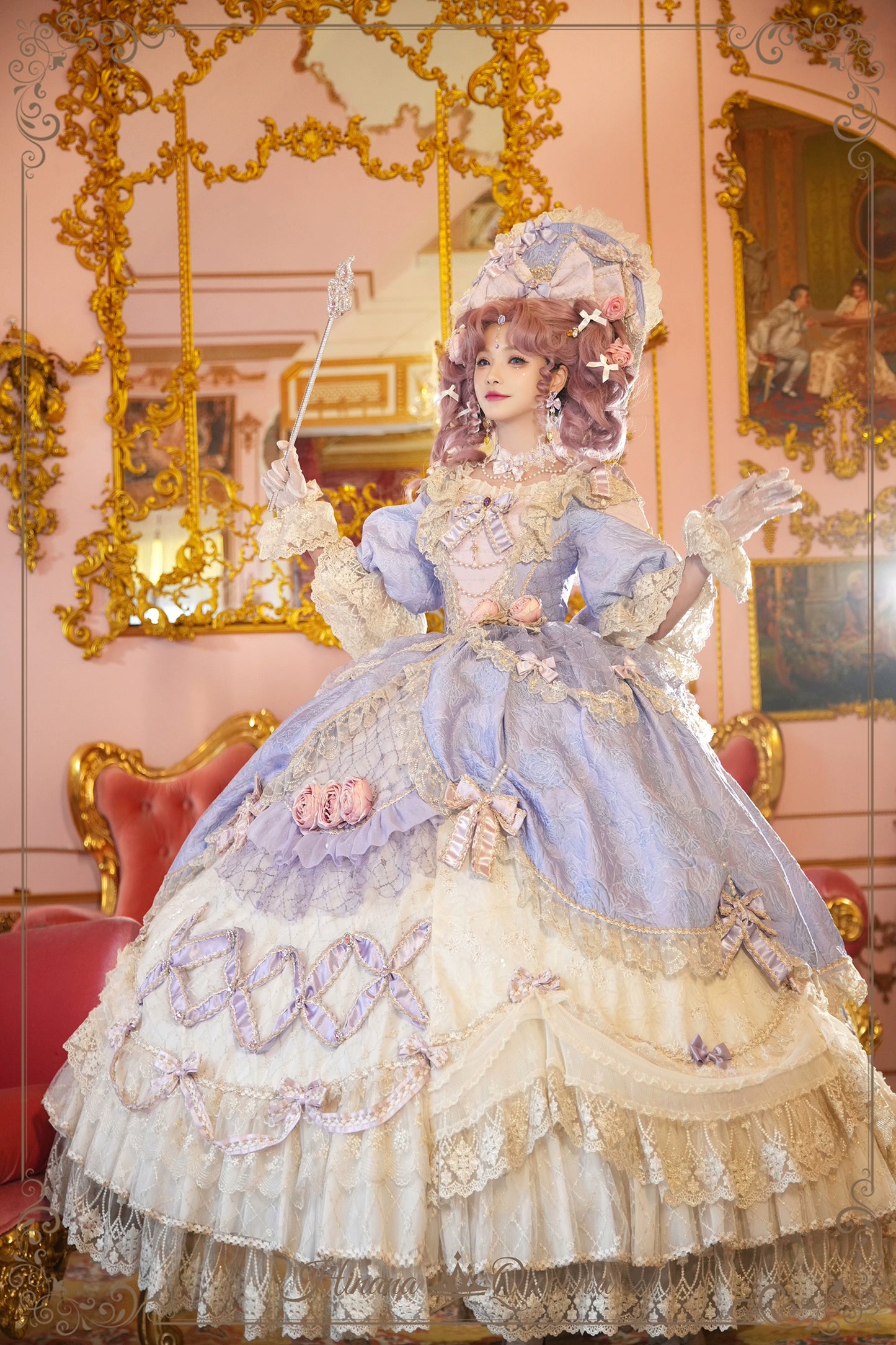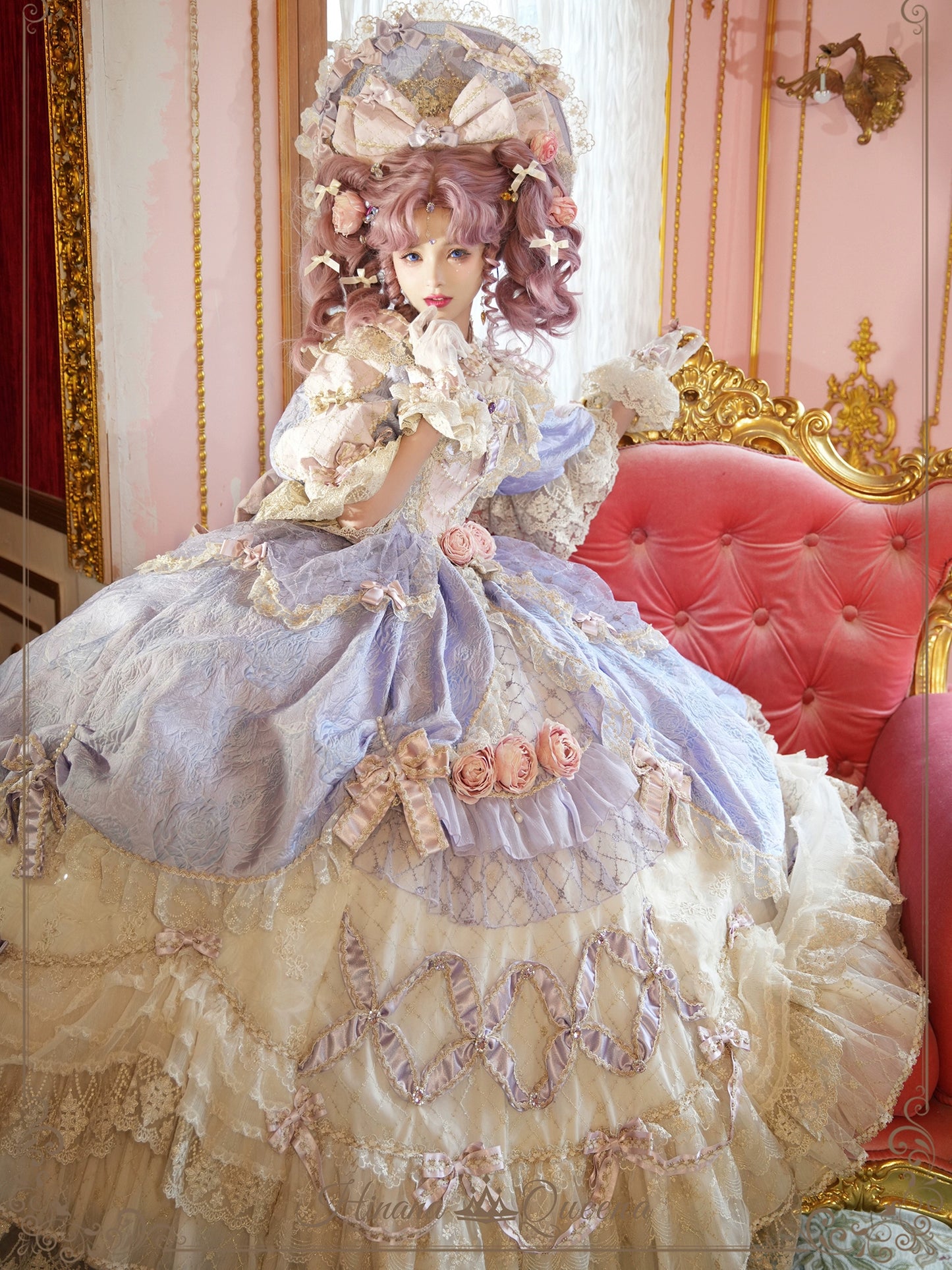 レースとフリルたっぷりのラグジュアリーなプリンセスドレス。パープルは大人っぽく上品な雰囲気に。