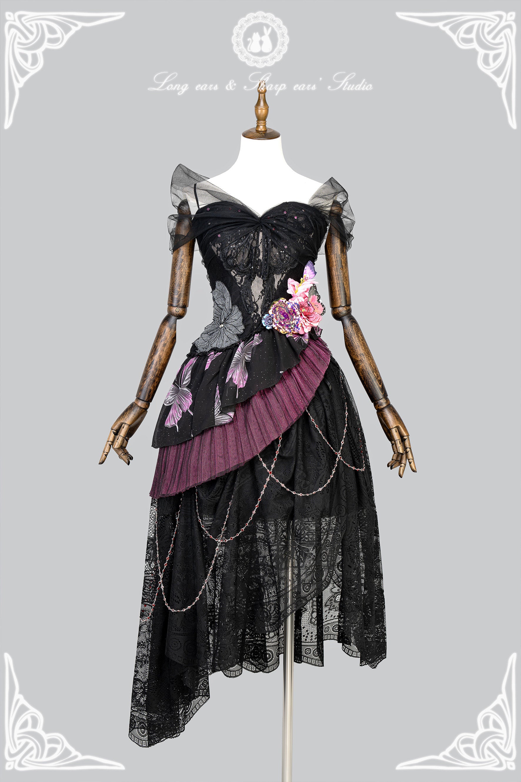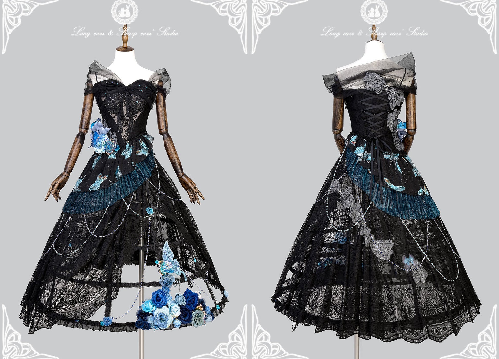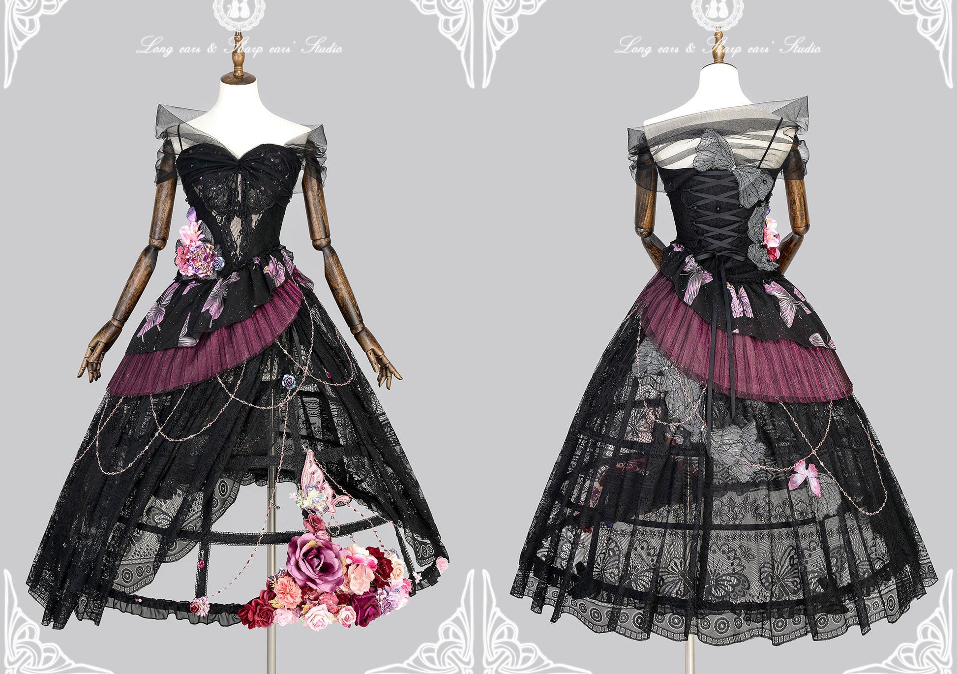 【受注予約12/29まで】夜吻蝶舞 ドレス+鳥かごパニエセット