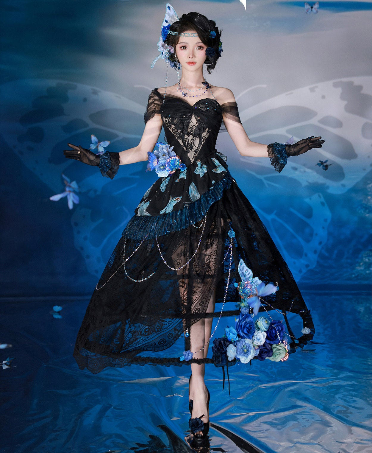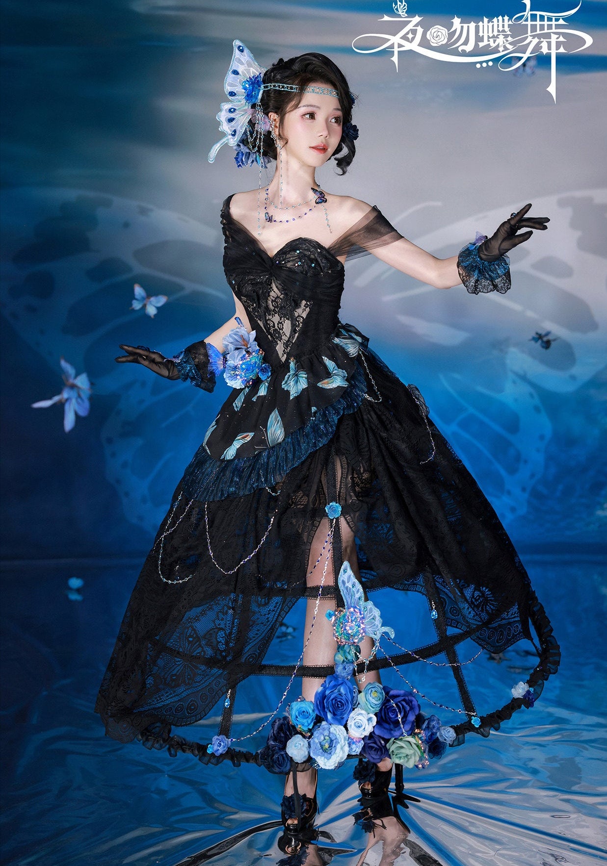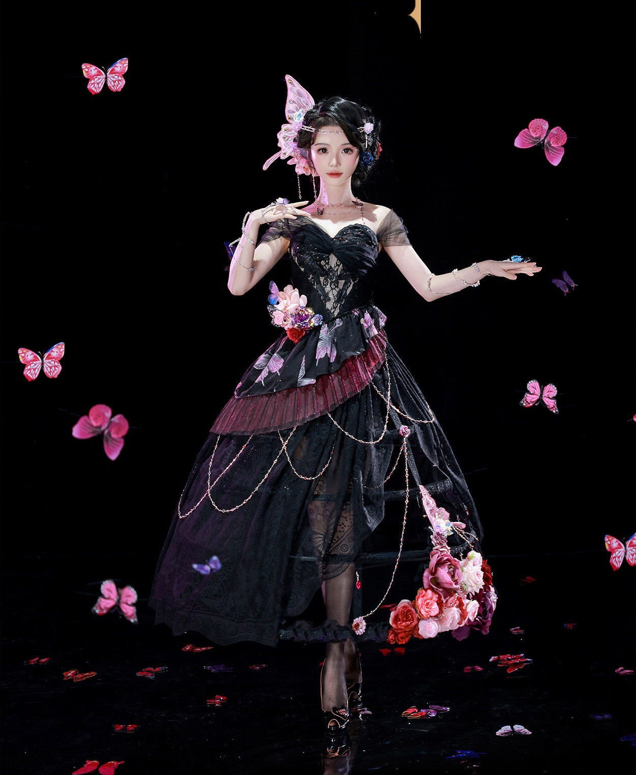 【受注予約12/29まで】夜吻蝶舞 ドレス+鳥かごパニエセット