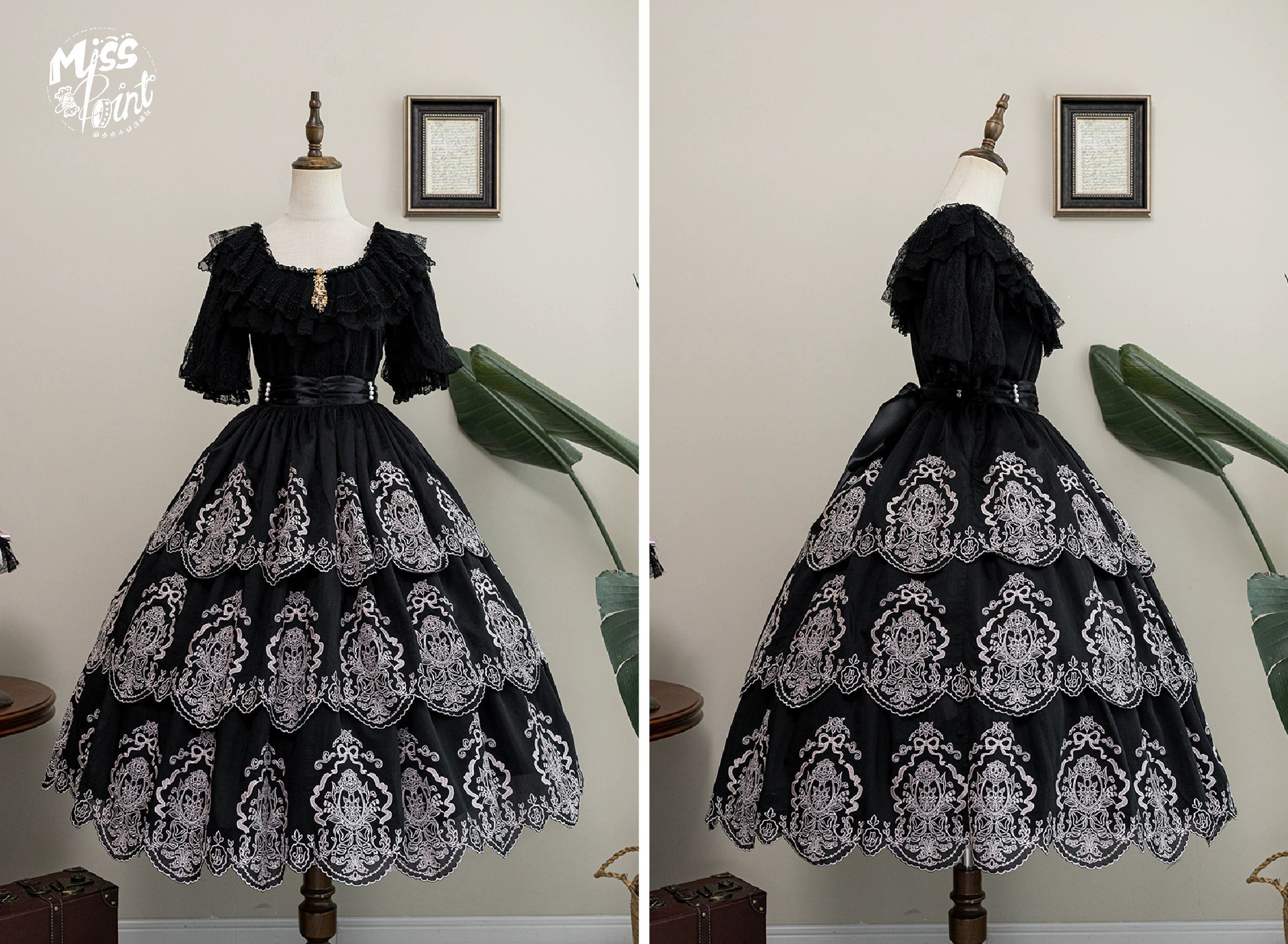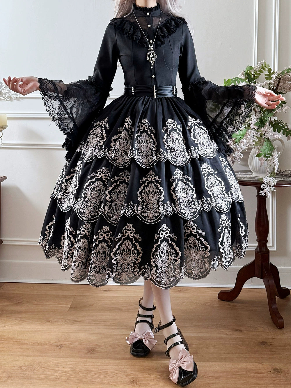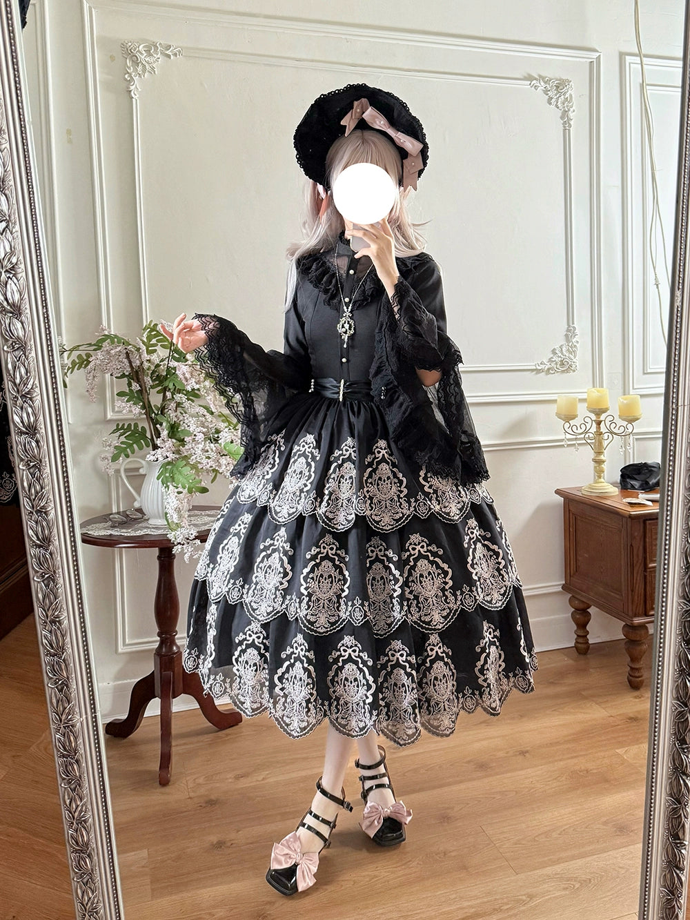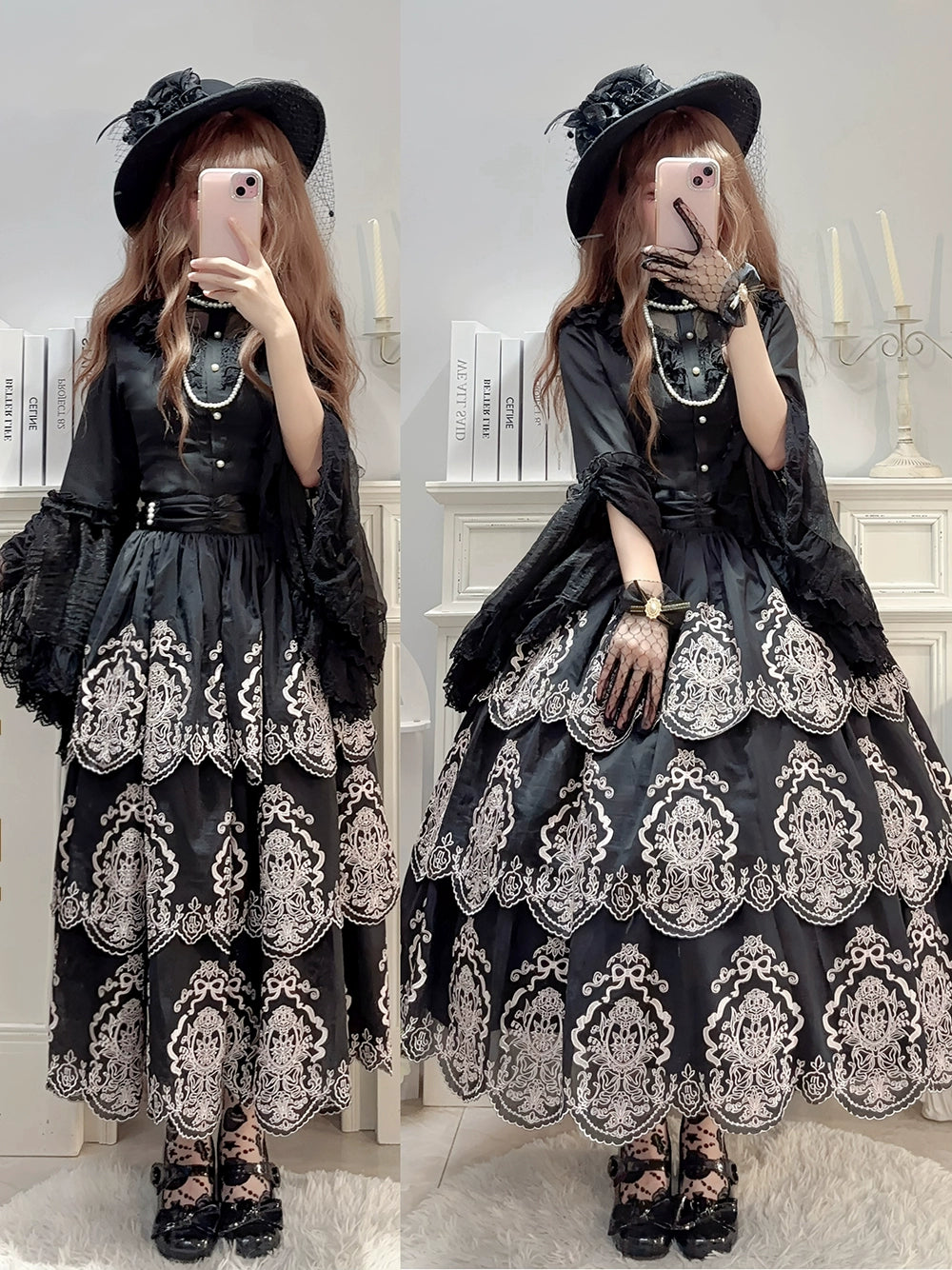 【予約販売】蛇と薔薇刺繍のシスター風ワンピースセット ロング丈