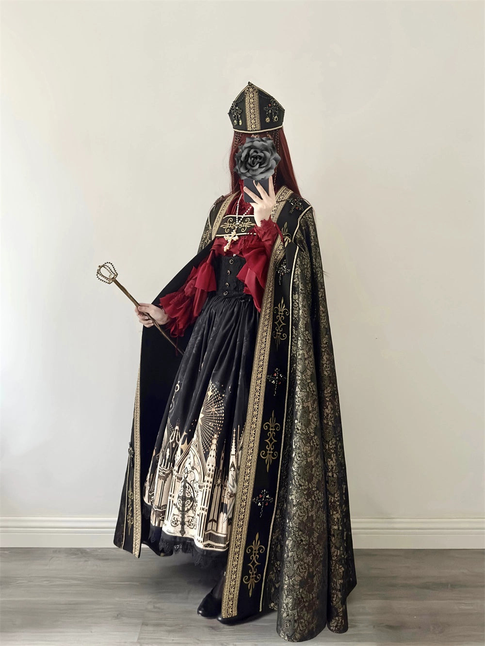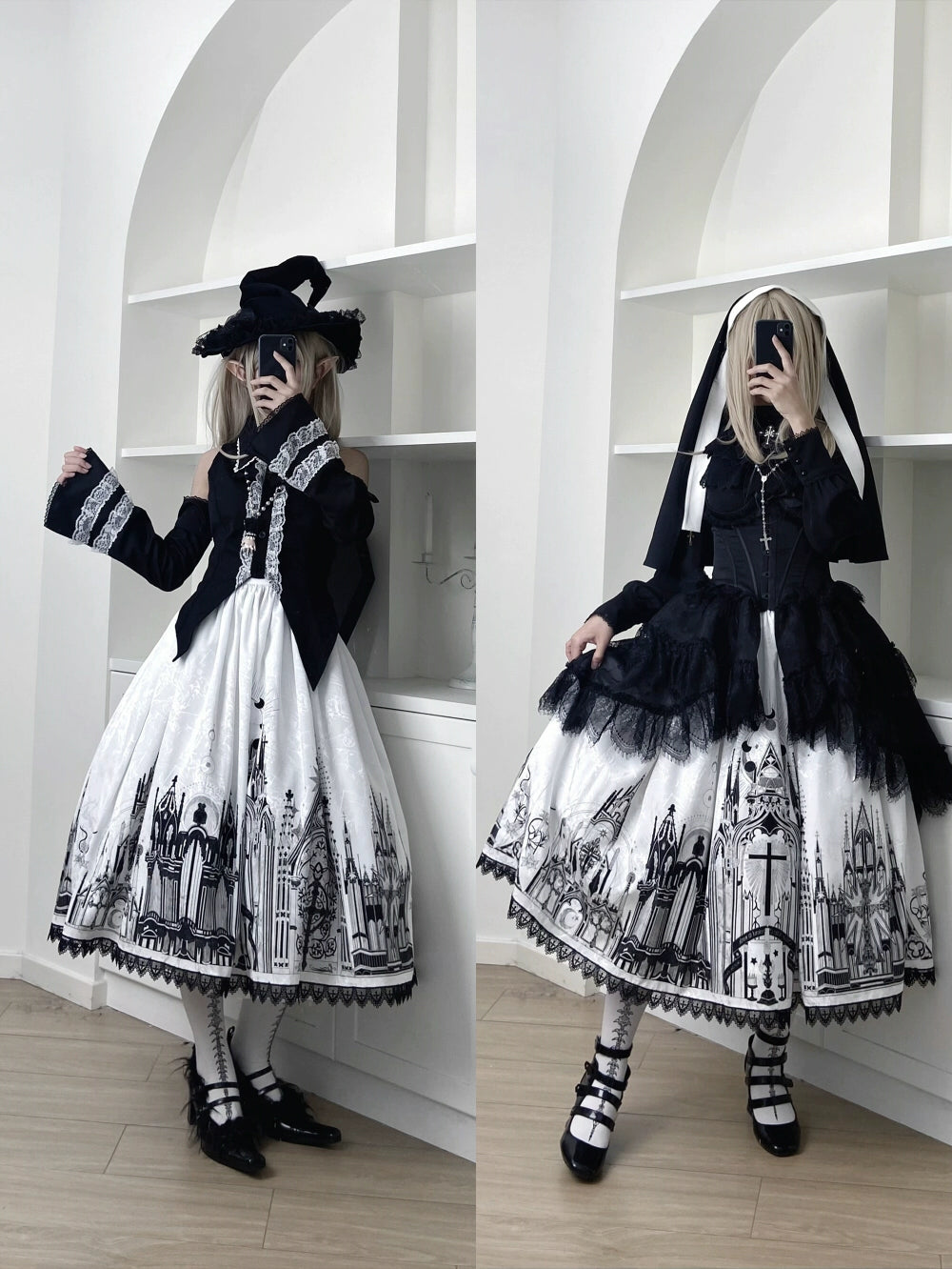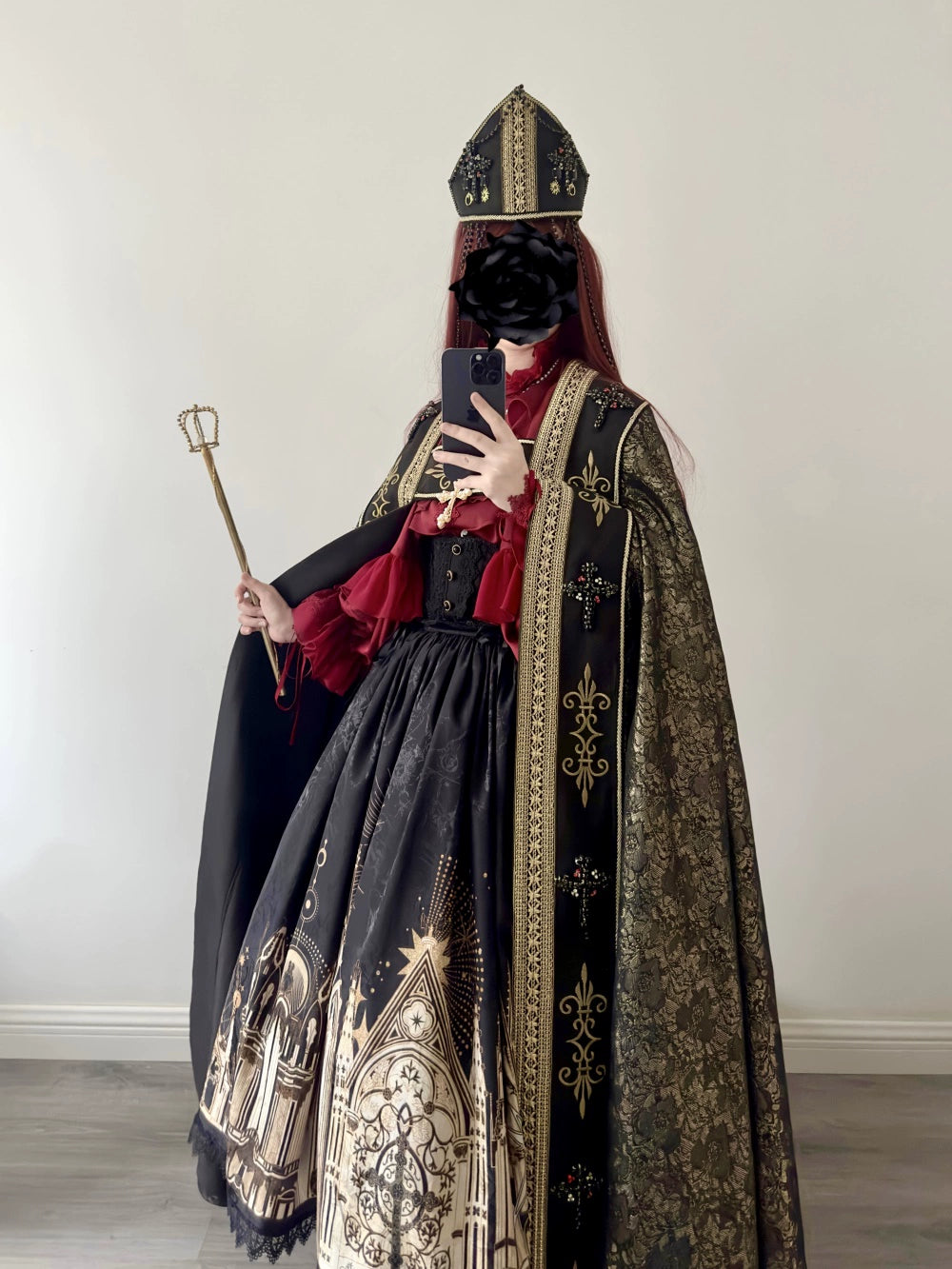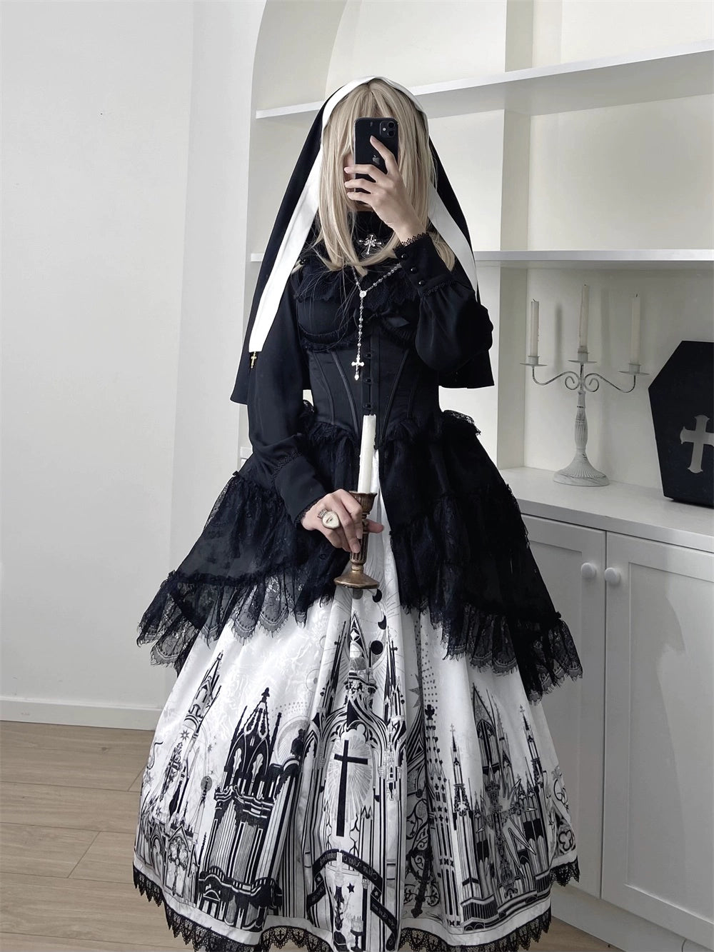 【予約販売】蛇と薔薇刺繍のシスター風ワンピースセット ロング丈