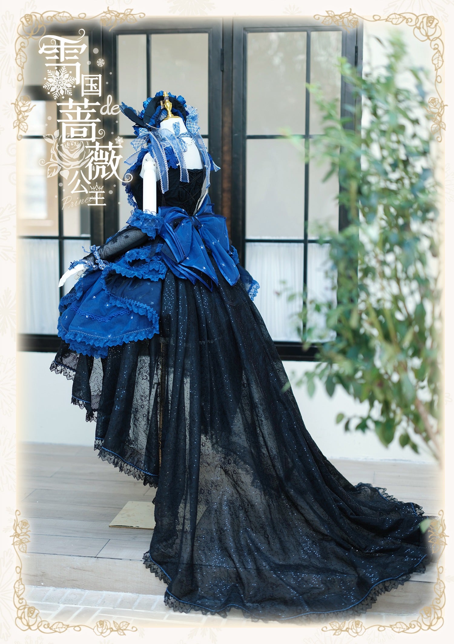 【受注予約8/13まで】Snow Rose Princess トレーン付きドレス・ブルー×ブラック(シルバー)