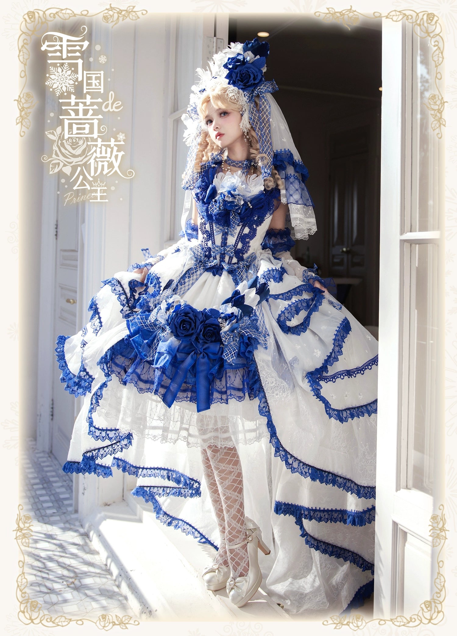 【受注予約8/13まで】Snow Rose Princess トレーン付きドレス・ブルー×ホワイト