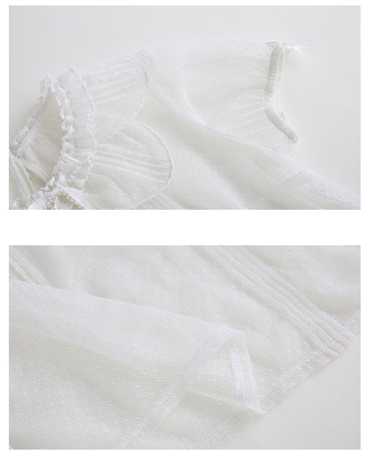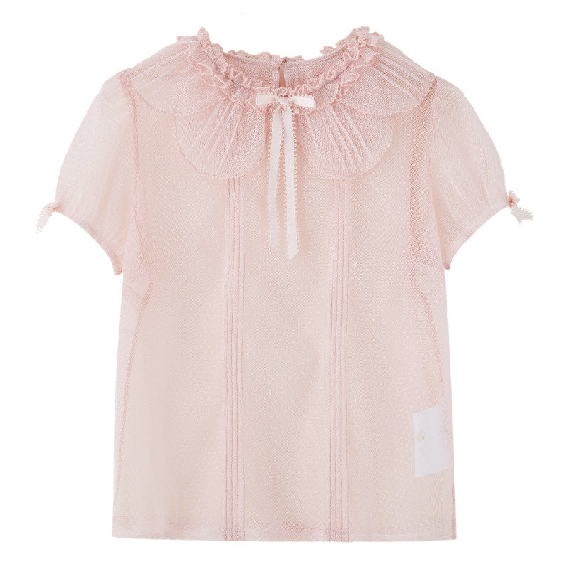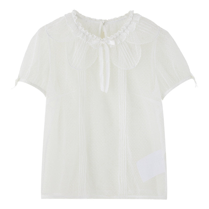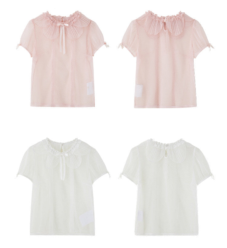 ドットチュール素材の透け感が可憐な印象の半袖ブラウス。