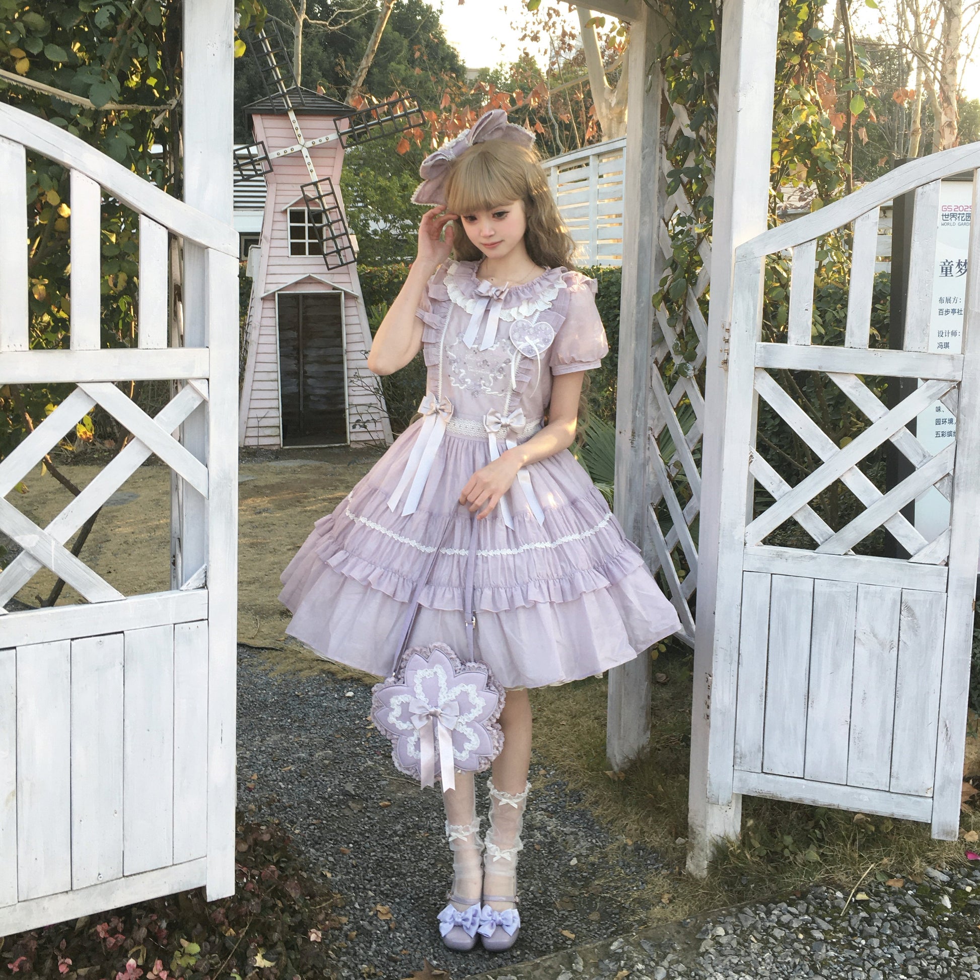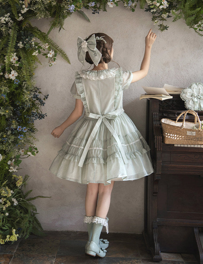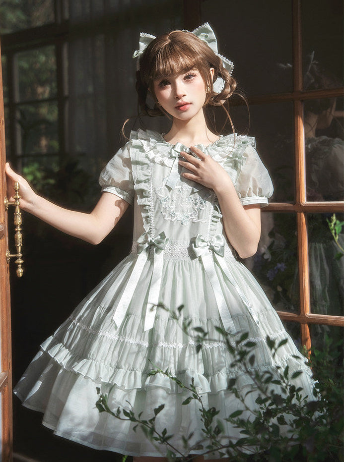 シアー素材にリボンと刺繍があしらわれたお人形のようなショート丈ワンピース。