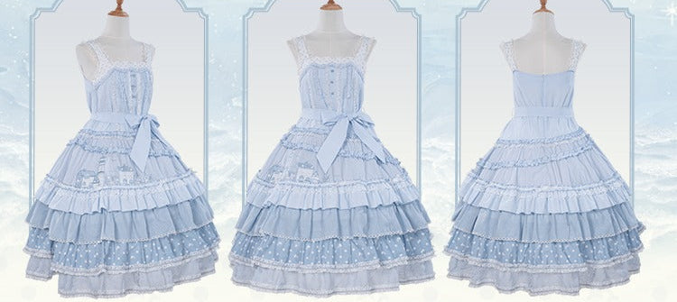 フリルやレースたっぷりのティアードデザインが可愛いジャンパースカート。