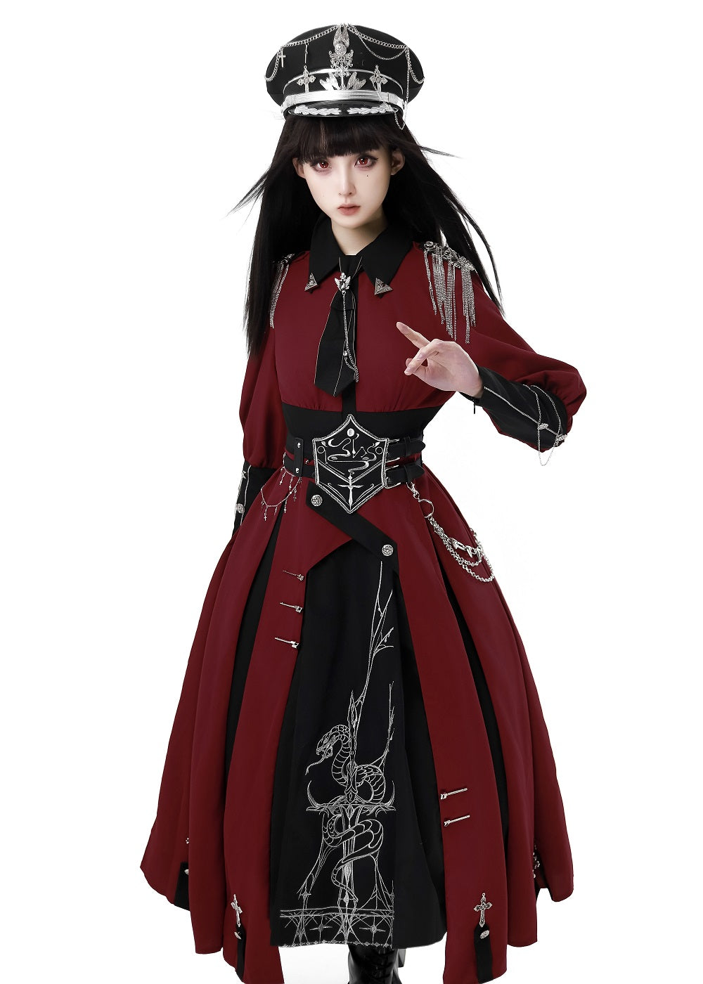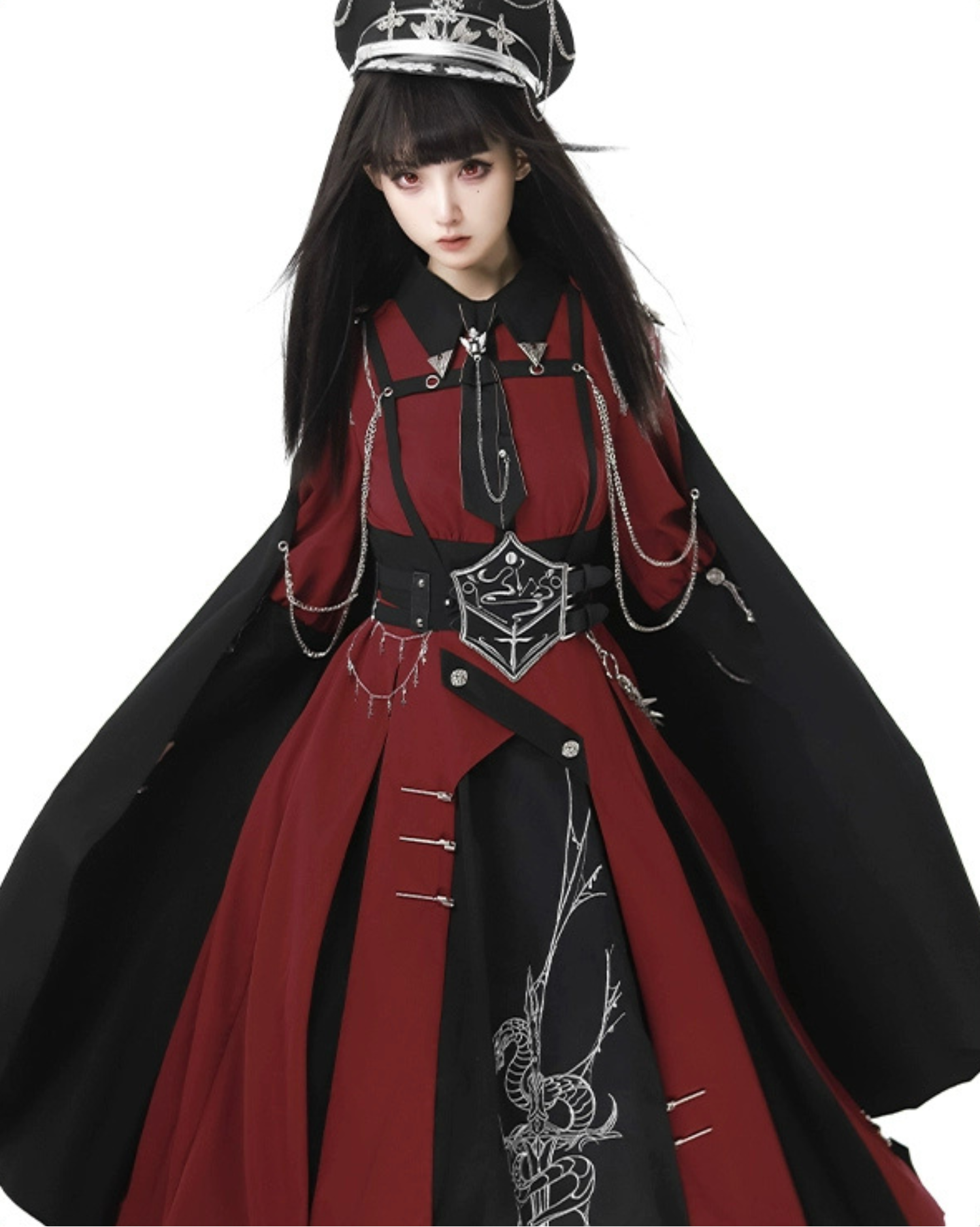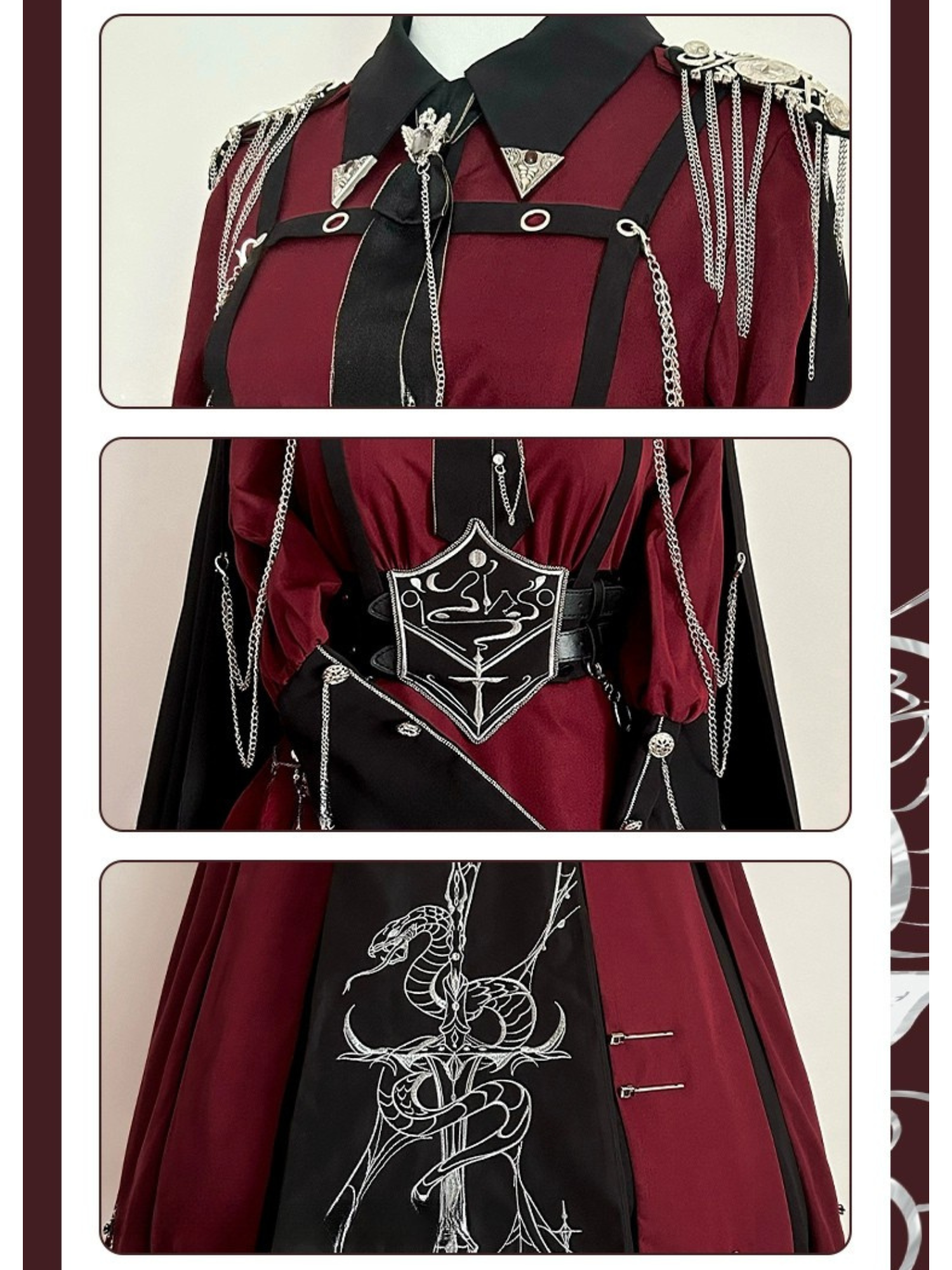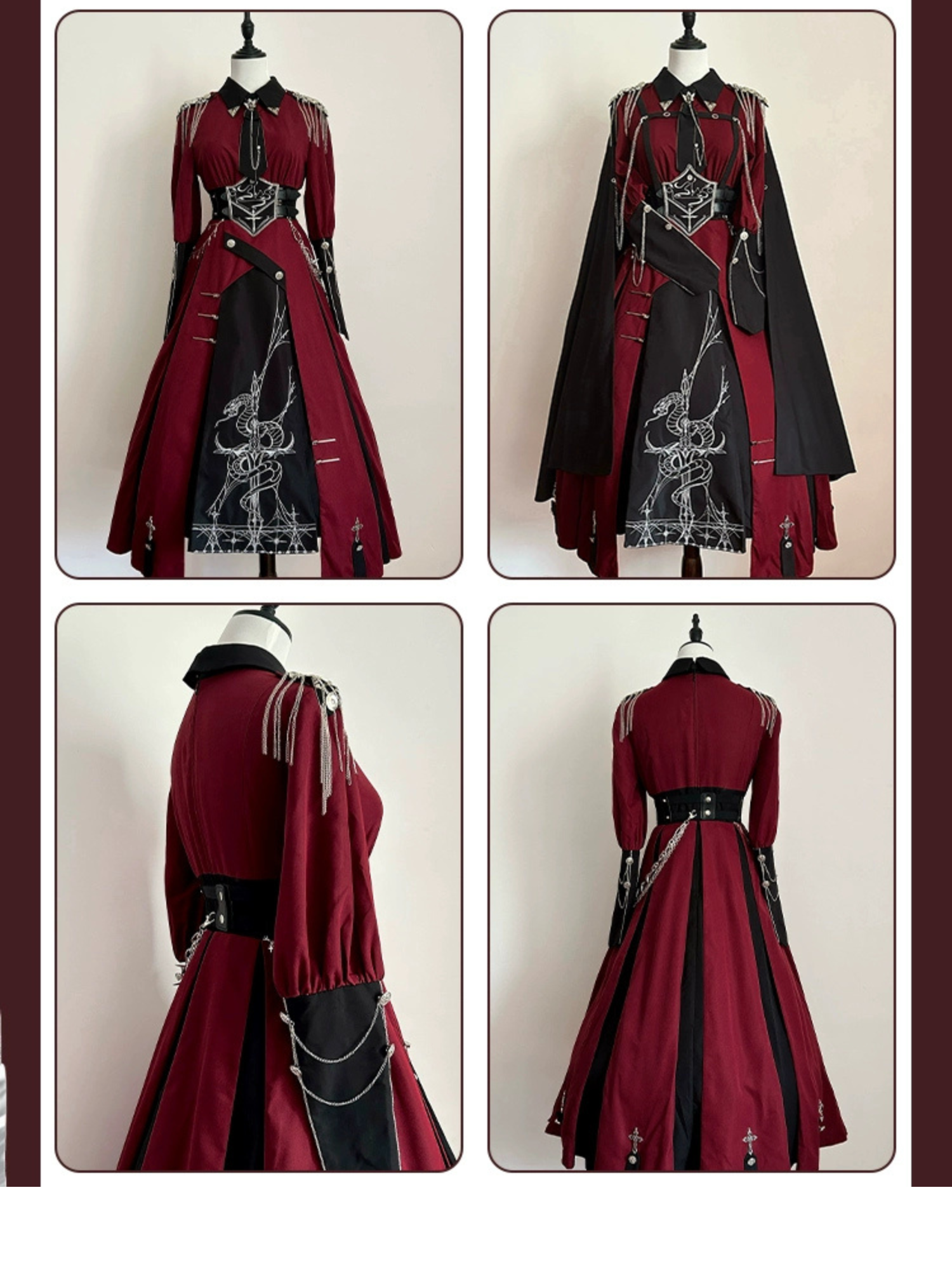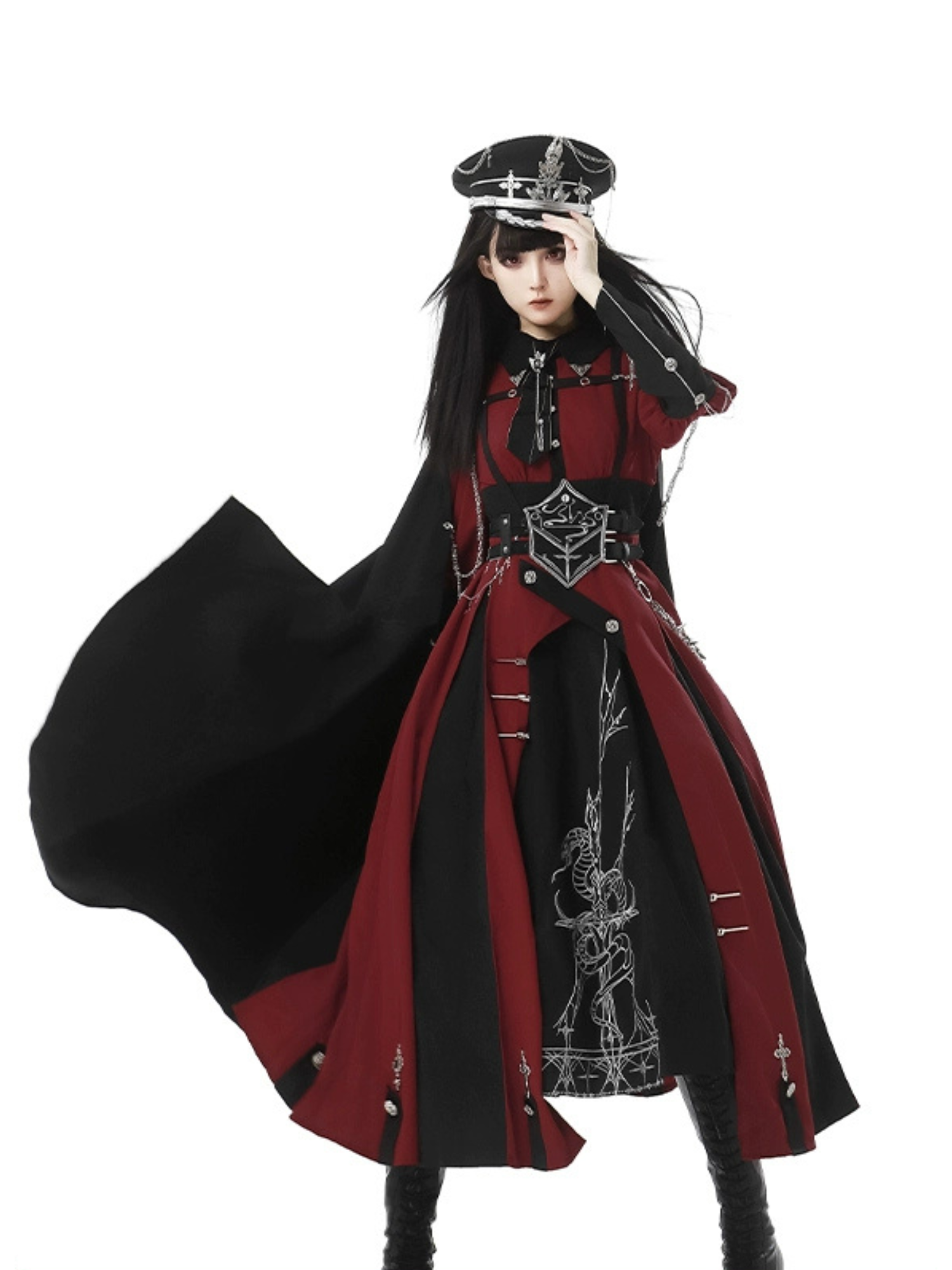 Crimson Knight 蛇刺繍ミリタリーワンピースとマント