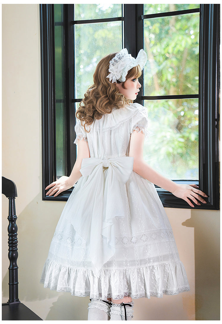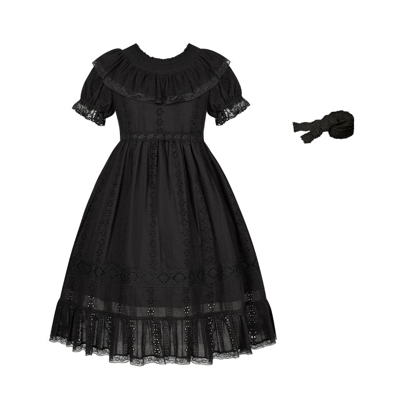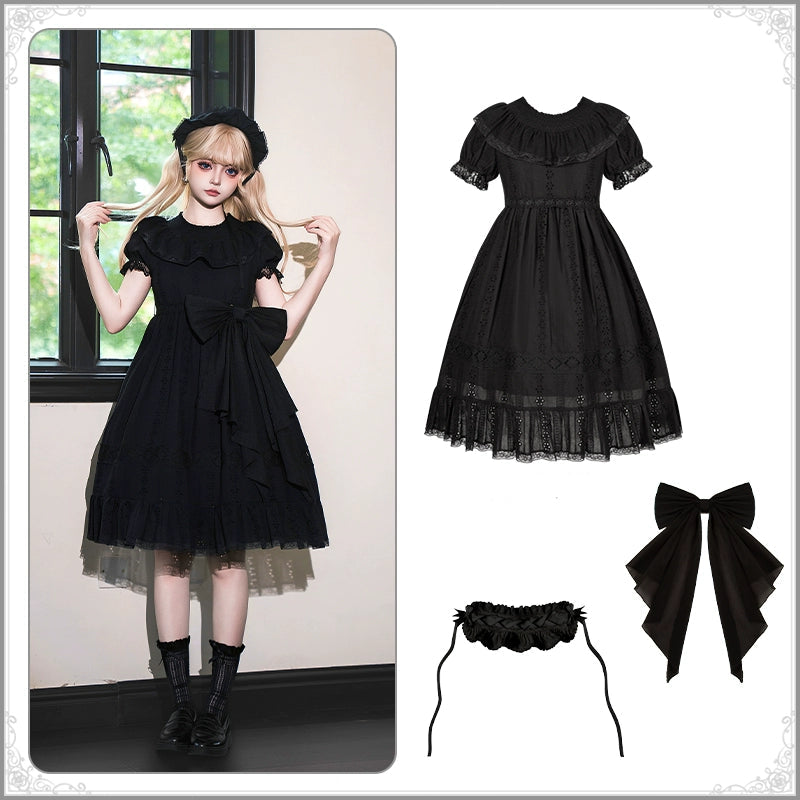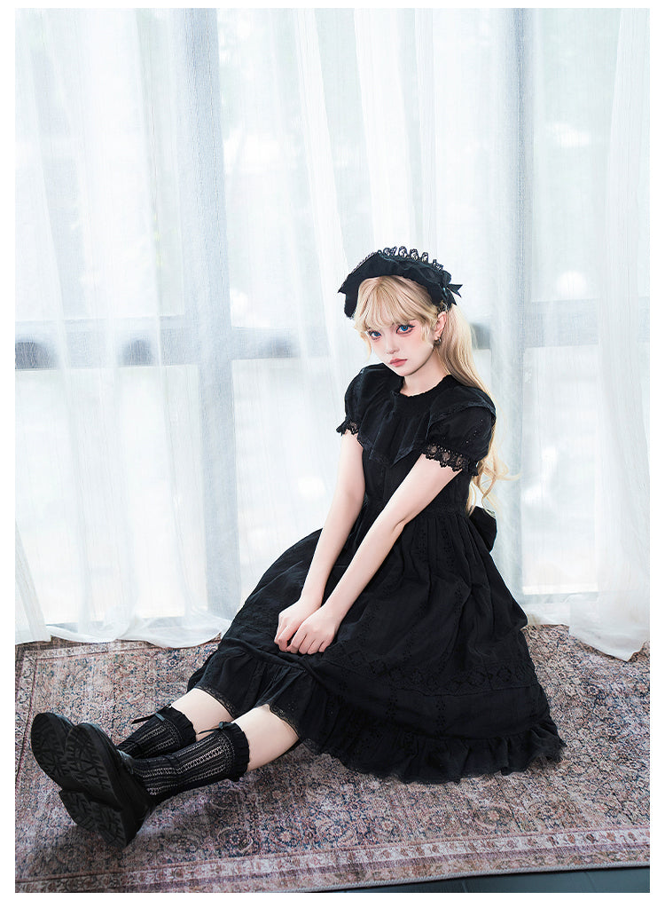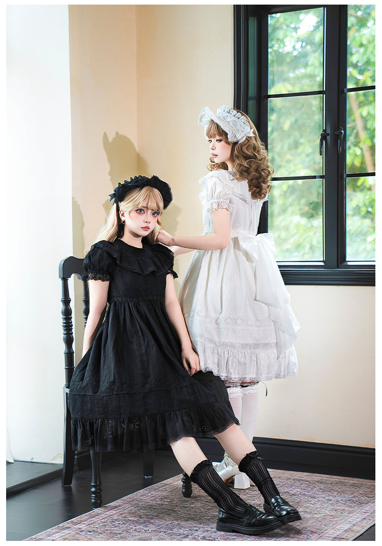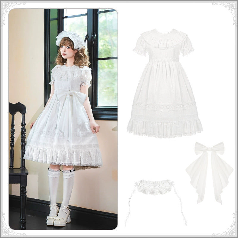 こちらのページはワンピース、ウエストベルト、リボン、ボンネットのみの販売となります。靴下その他は付属しません。