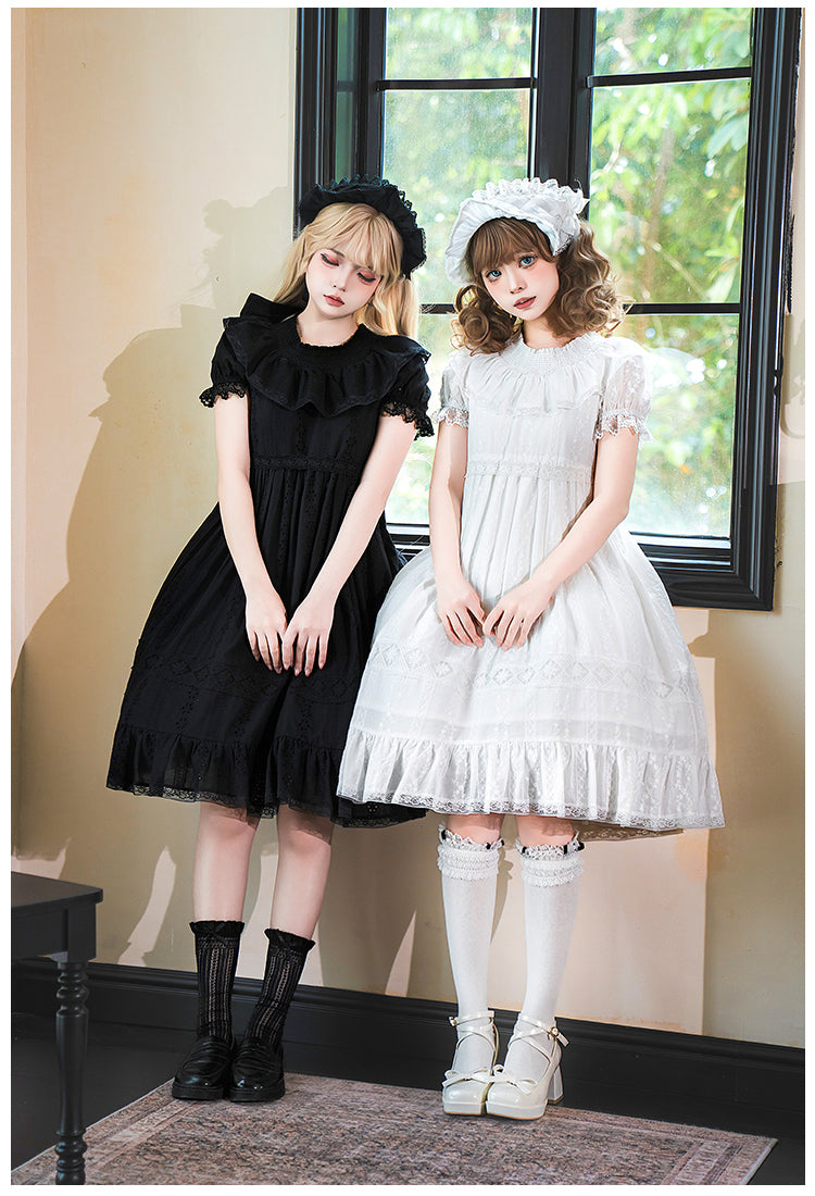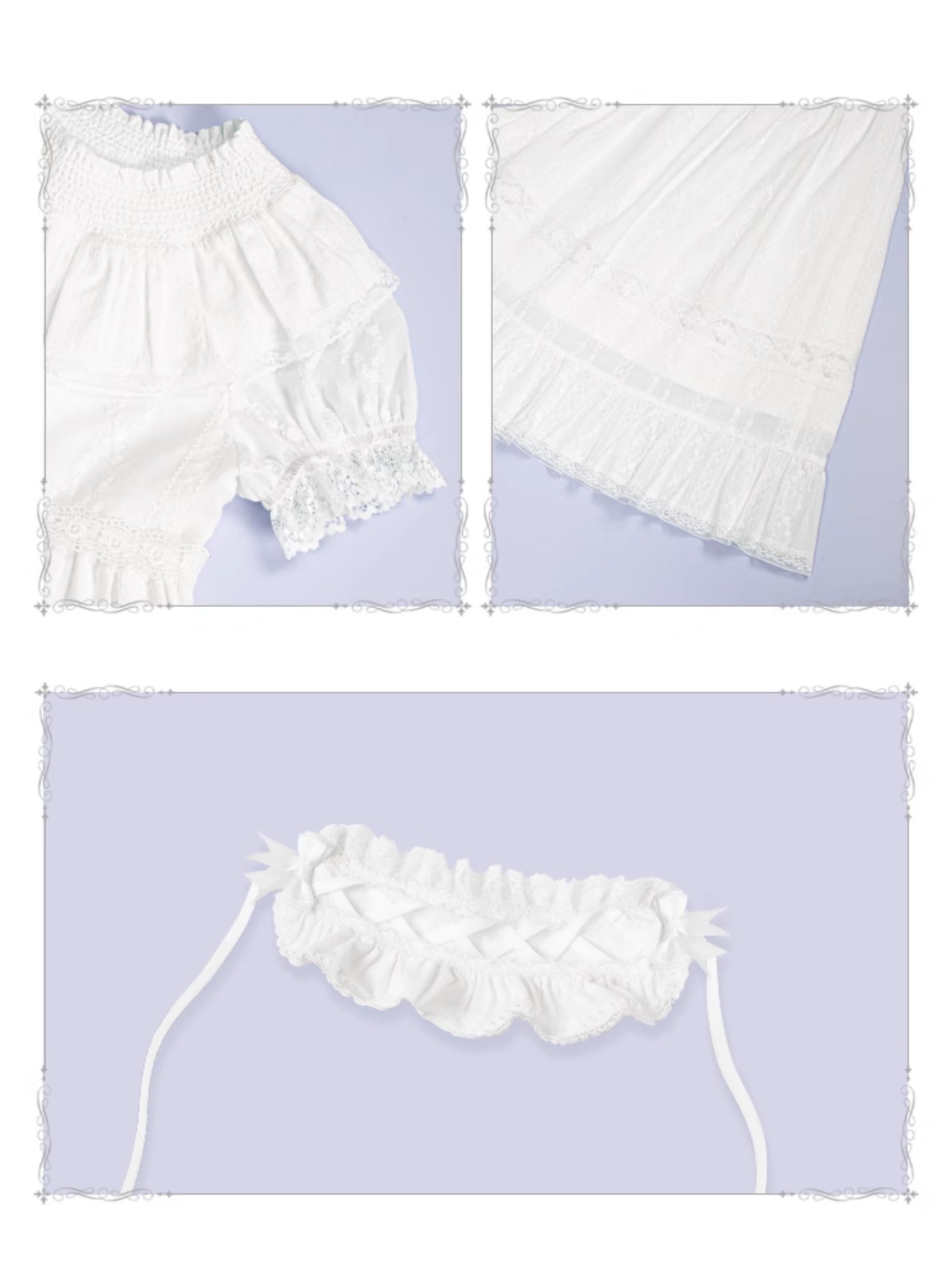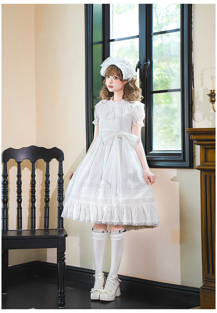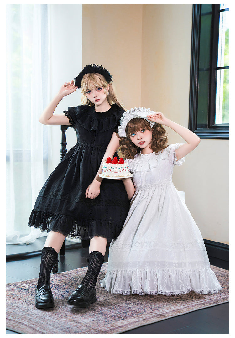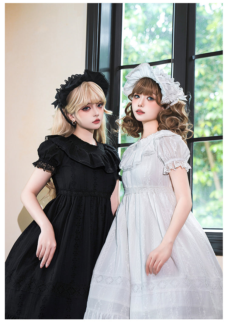 こちらのページはワンピース、ウエストベルト、リボン、ボンネットのみの販売となります。靴下その他は付属しません。