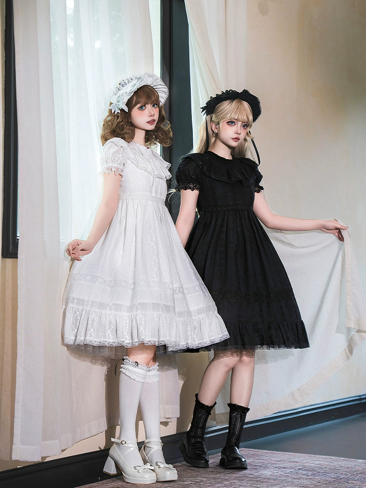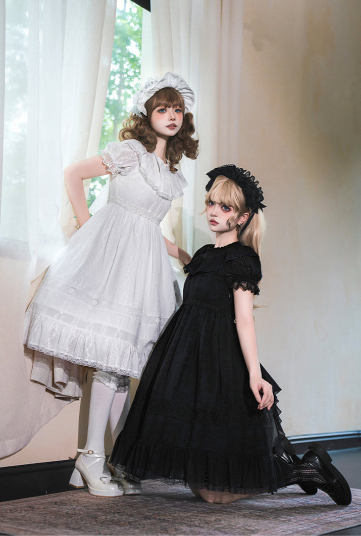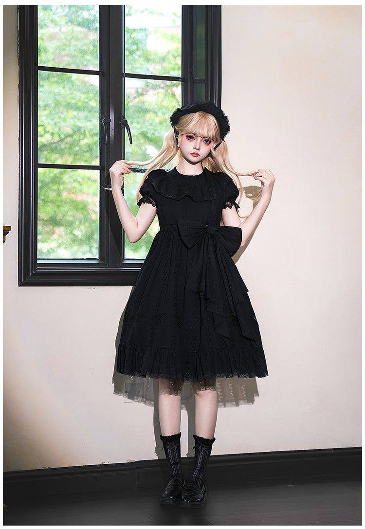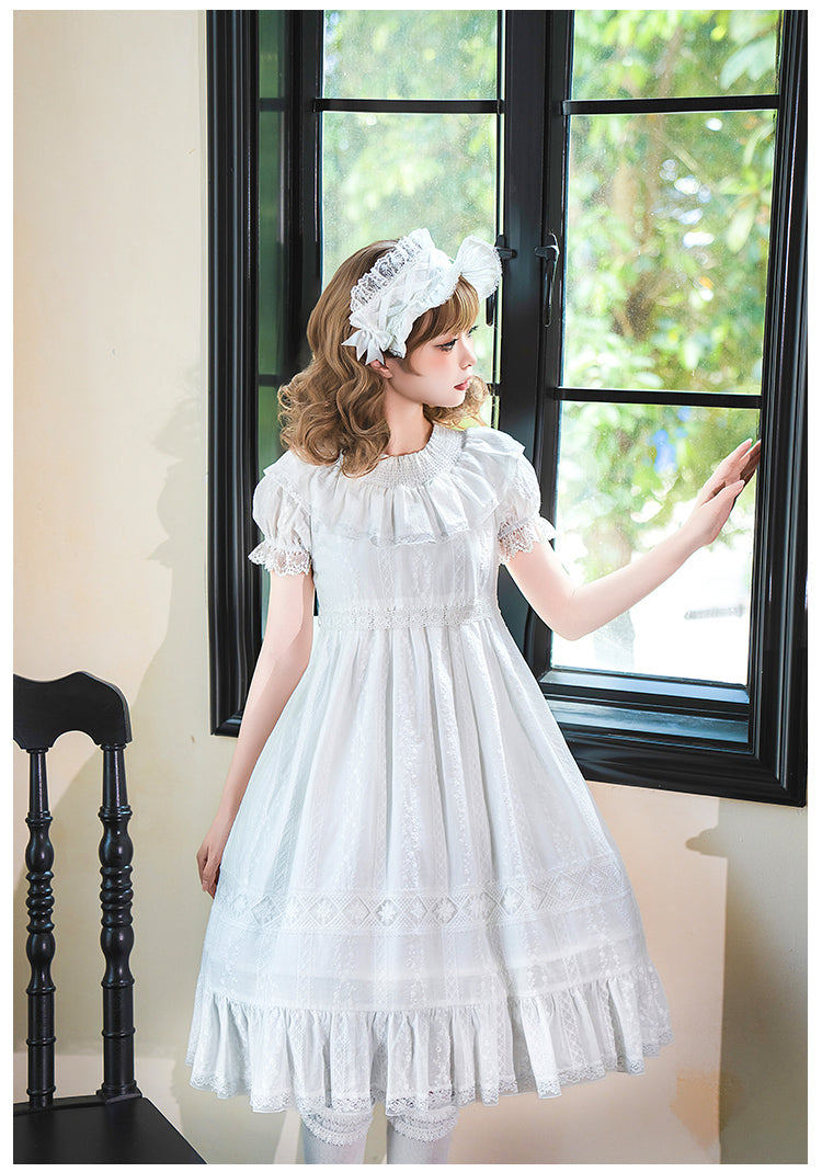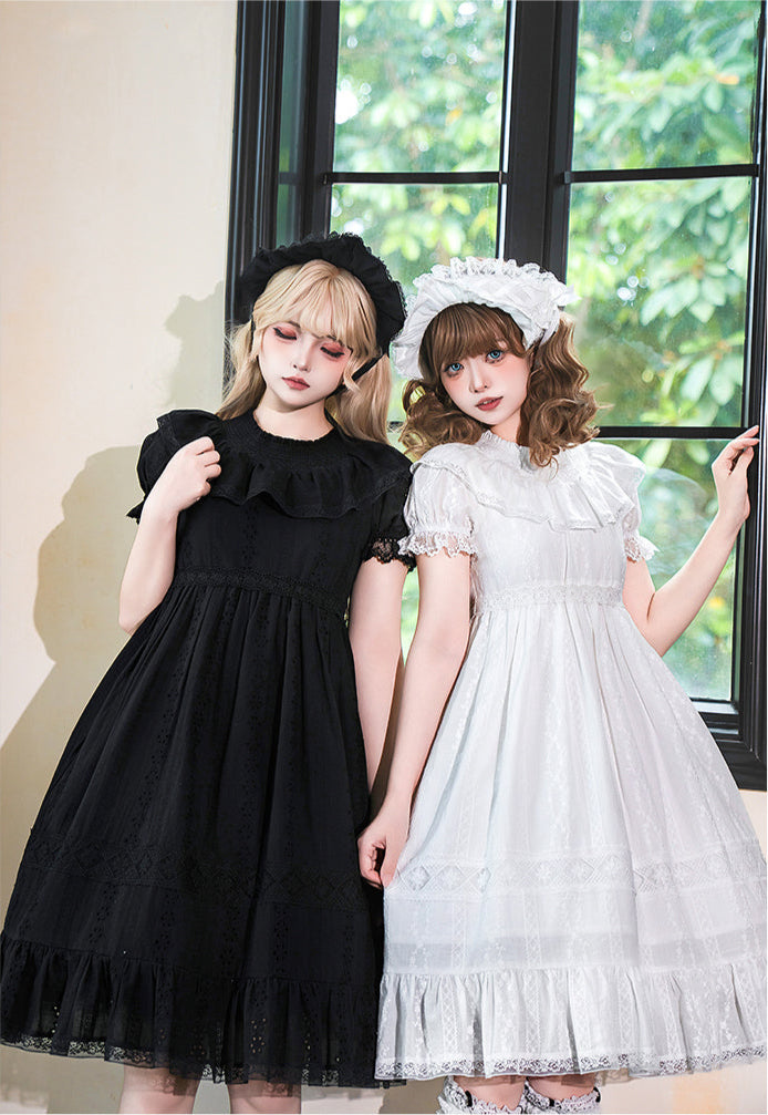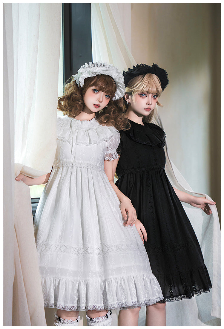 こちらのページはワンピース、ウエストベルト、リボン、ボンネットのみの販売となります。靴下その他は付属しません。