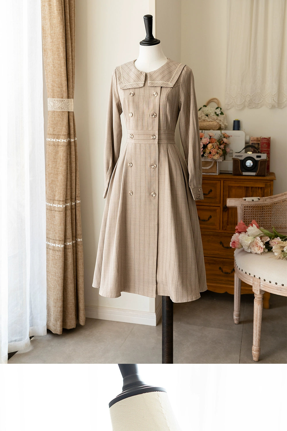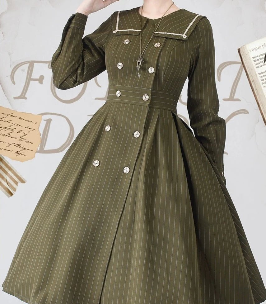 Forest Diary ストライプクラシカルコートワンピース リボンカチューシャ付き