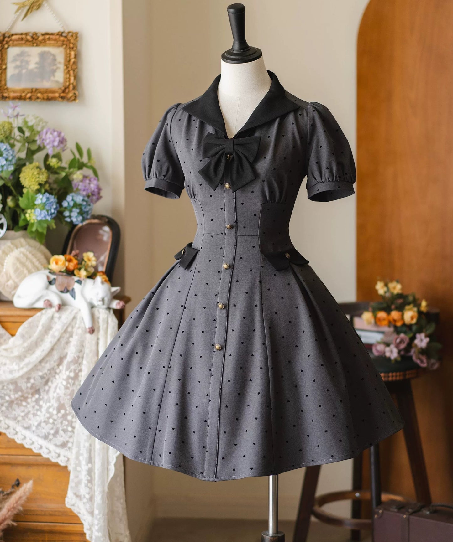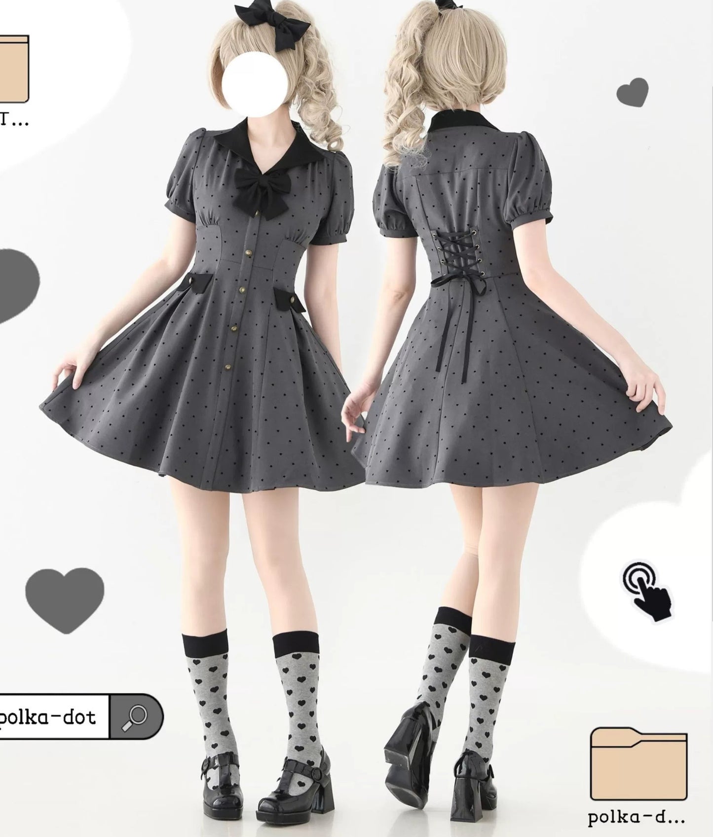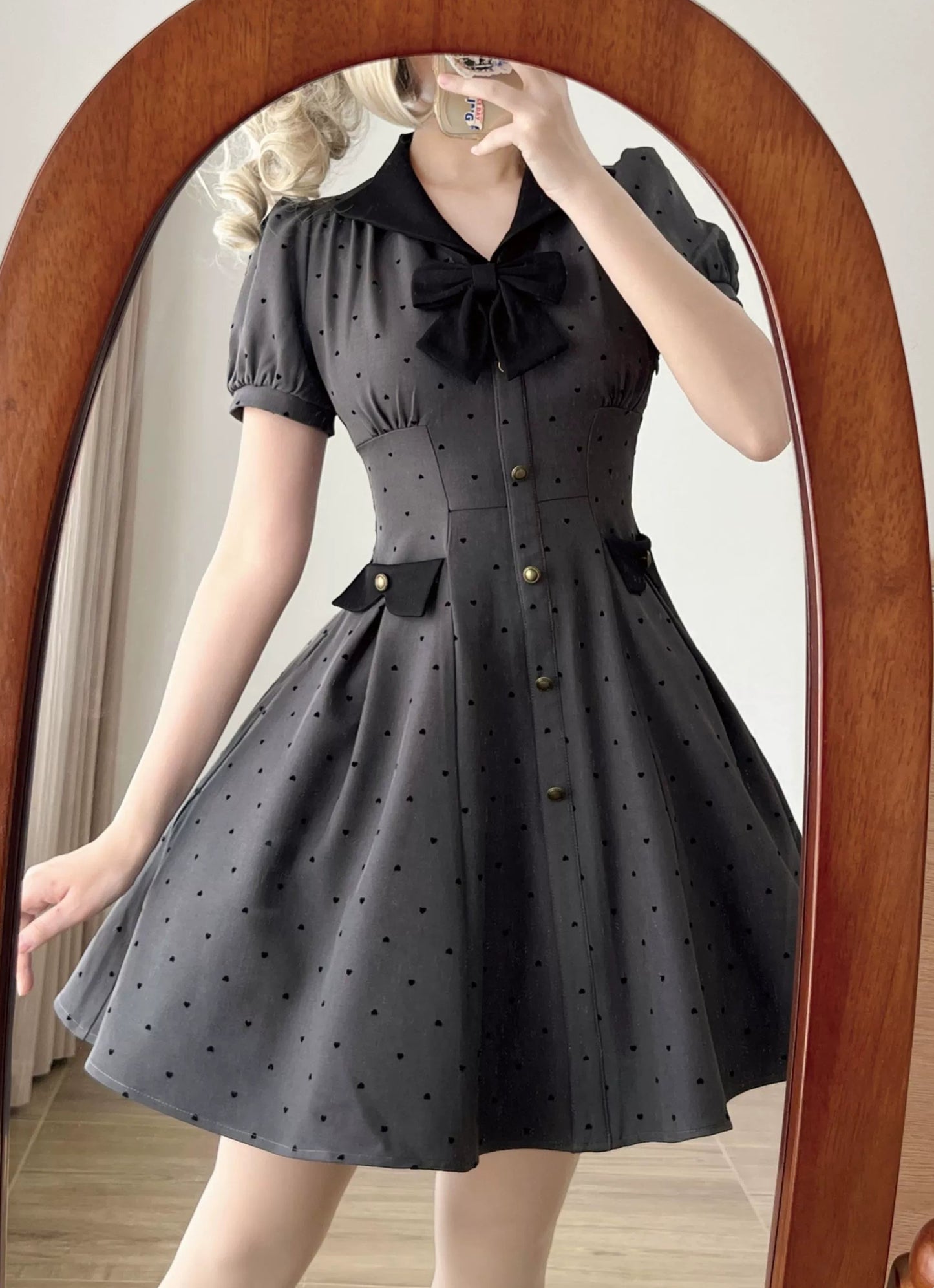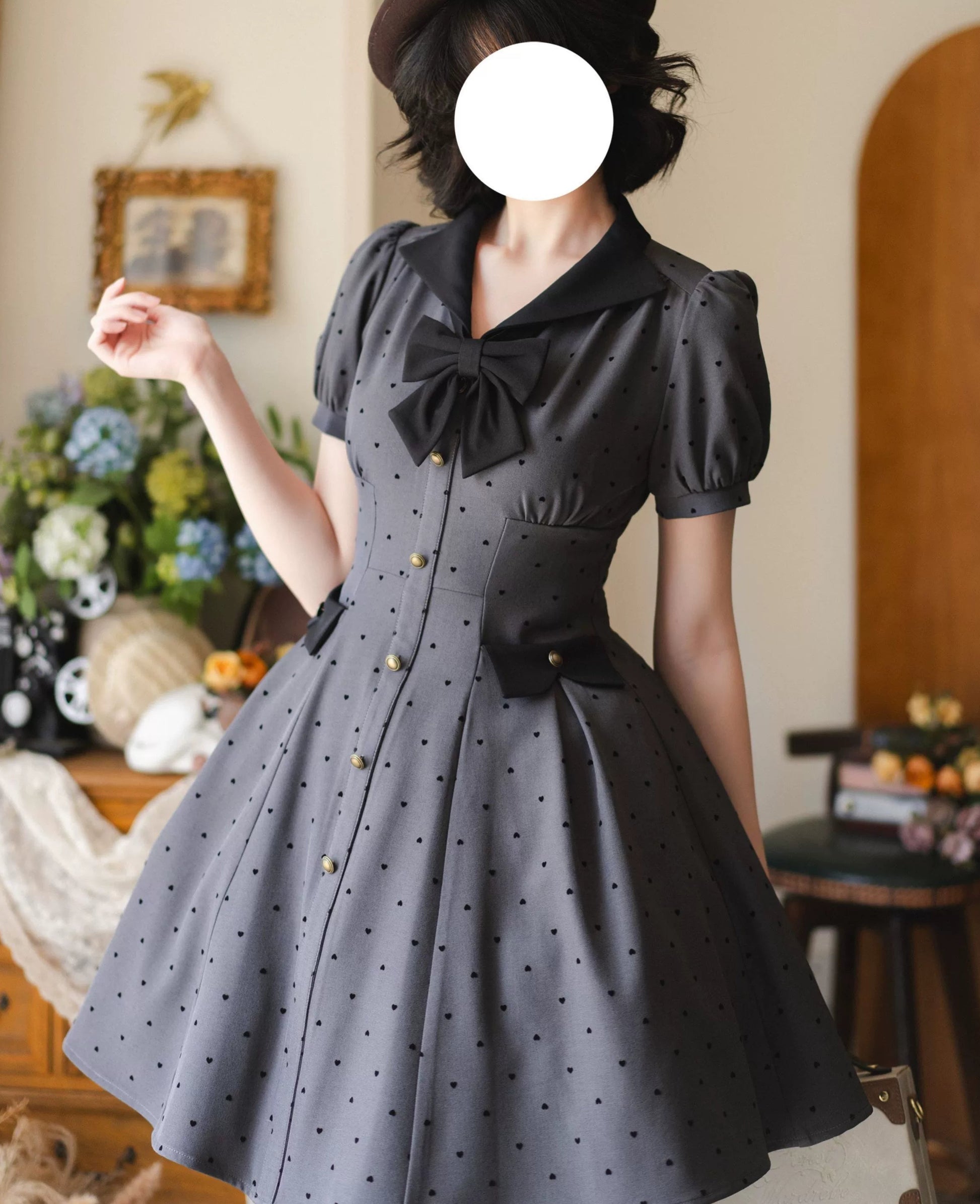 短めの着丈に小さなハートの水玉柄が可愛い半袖ワンピース。