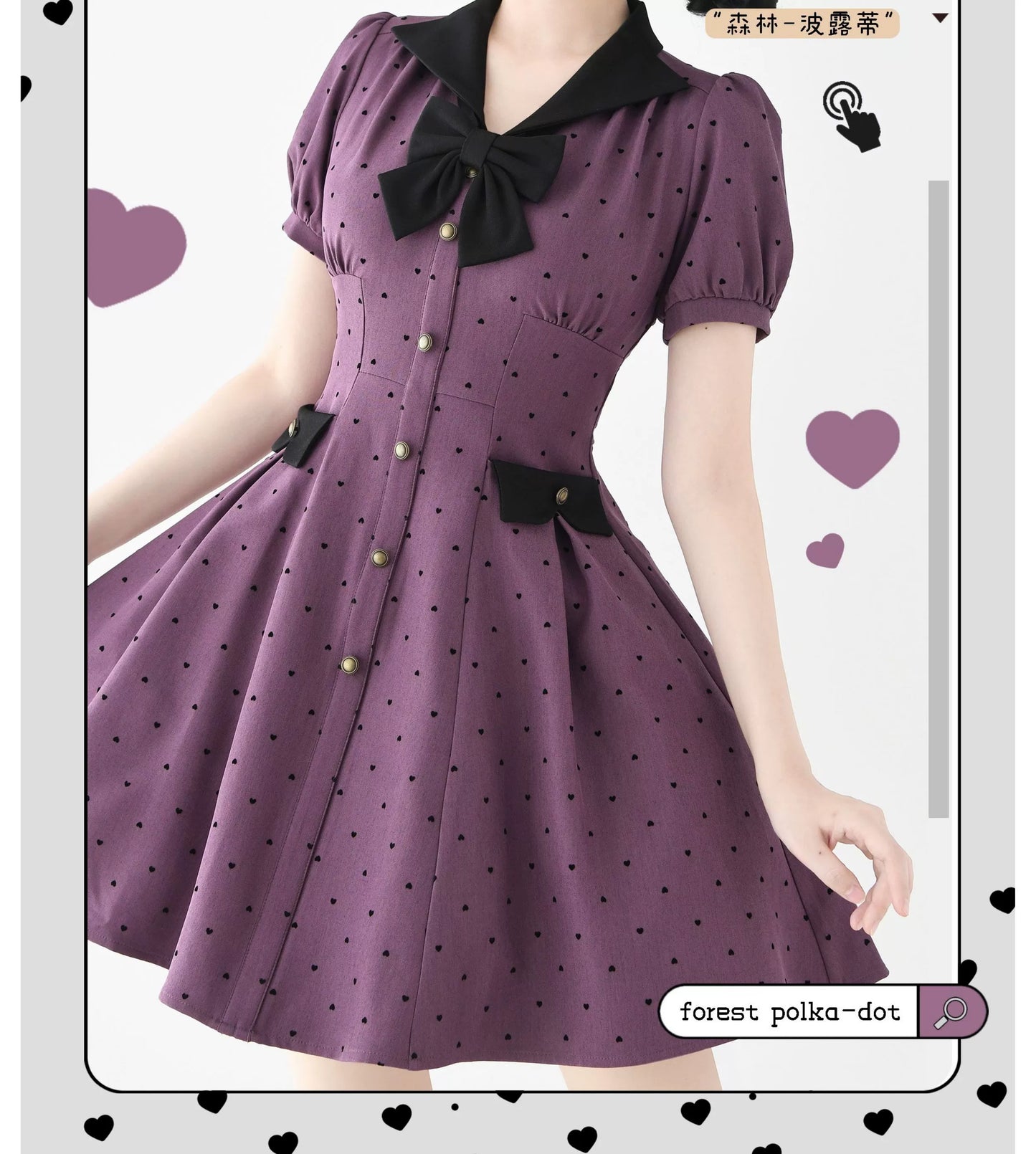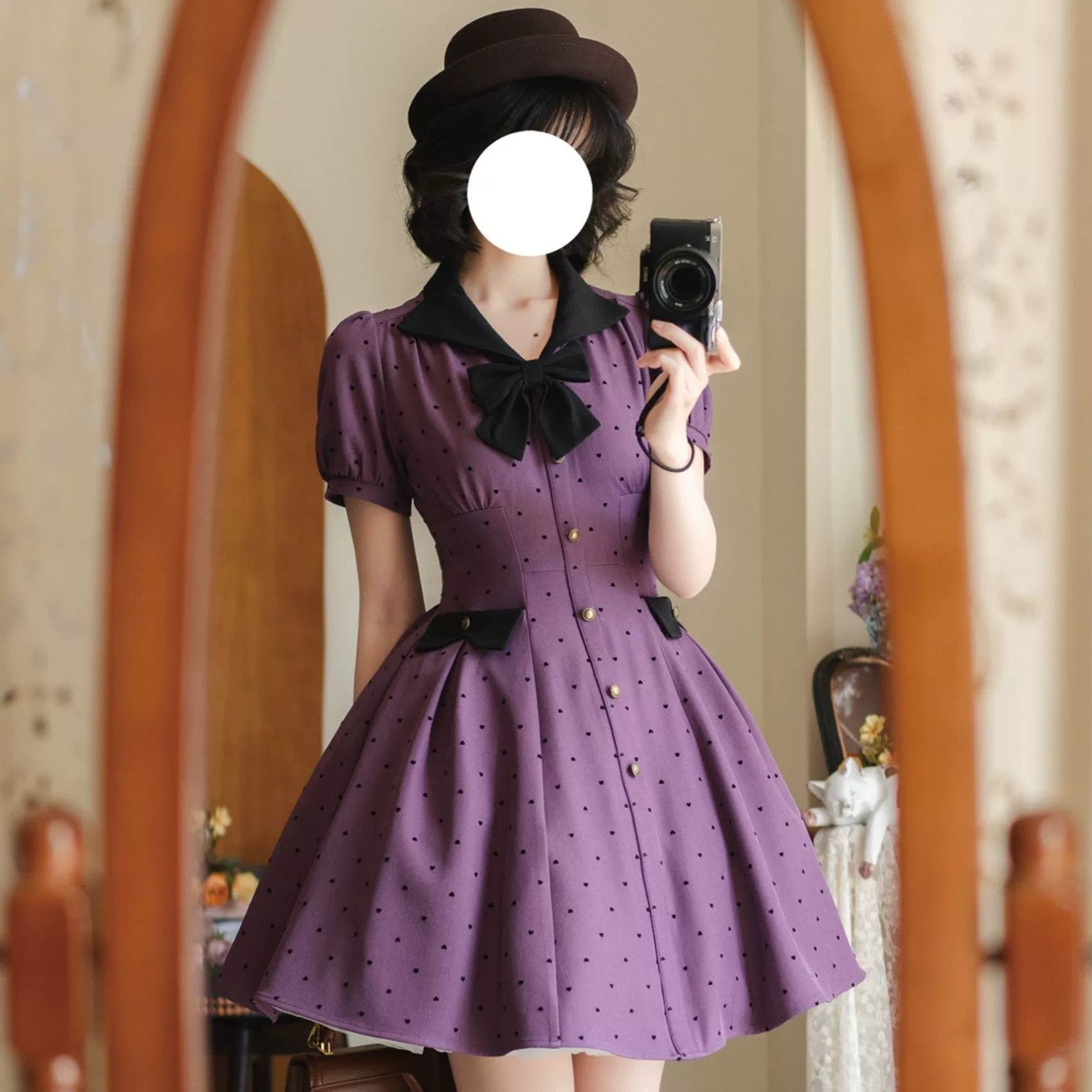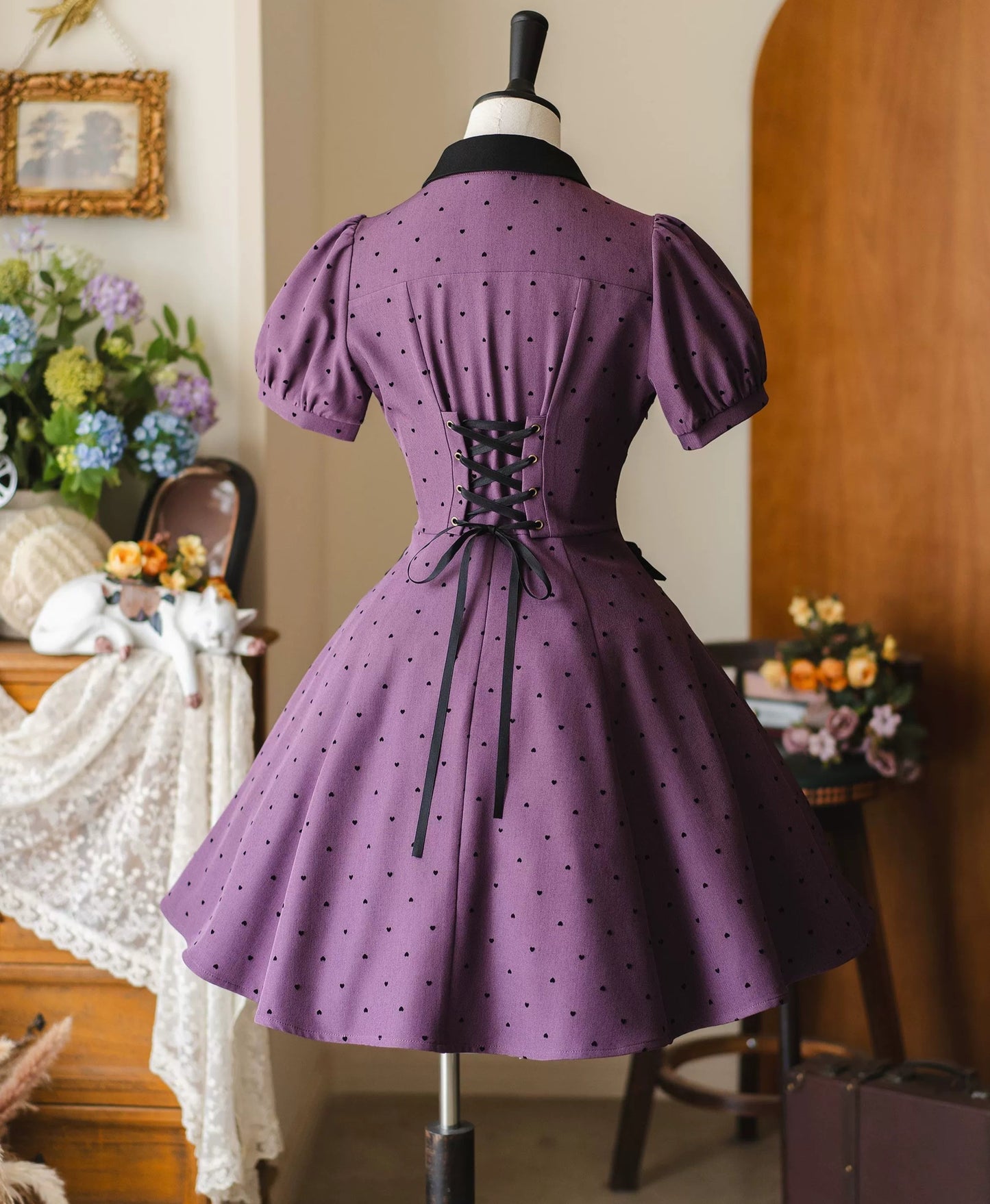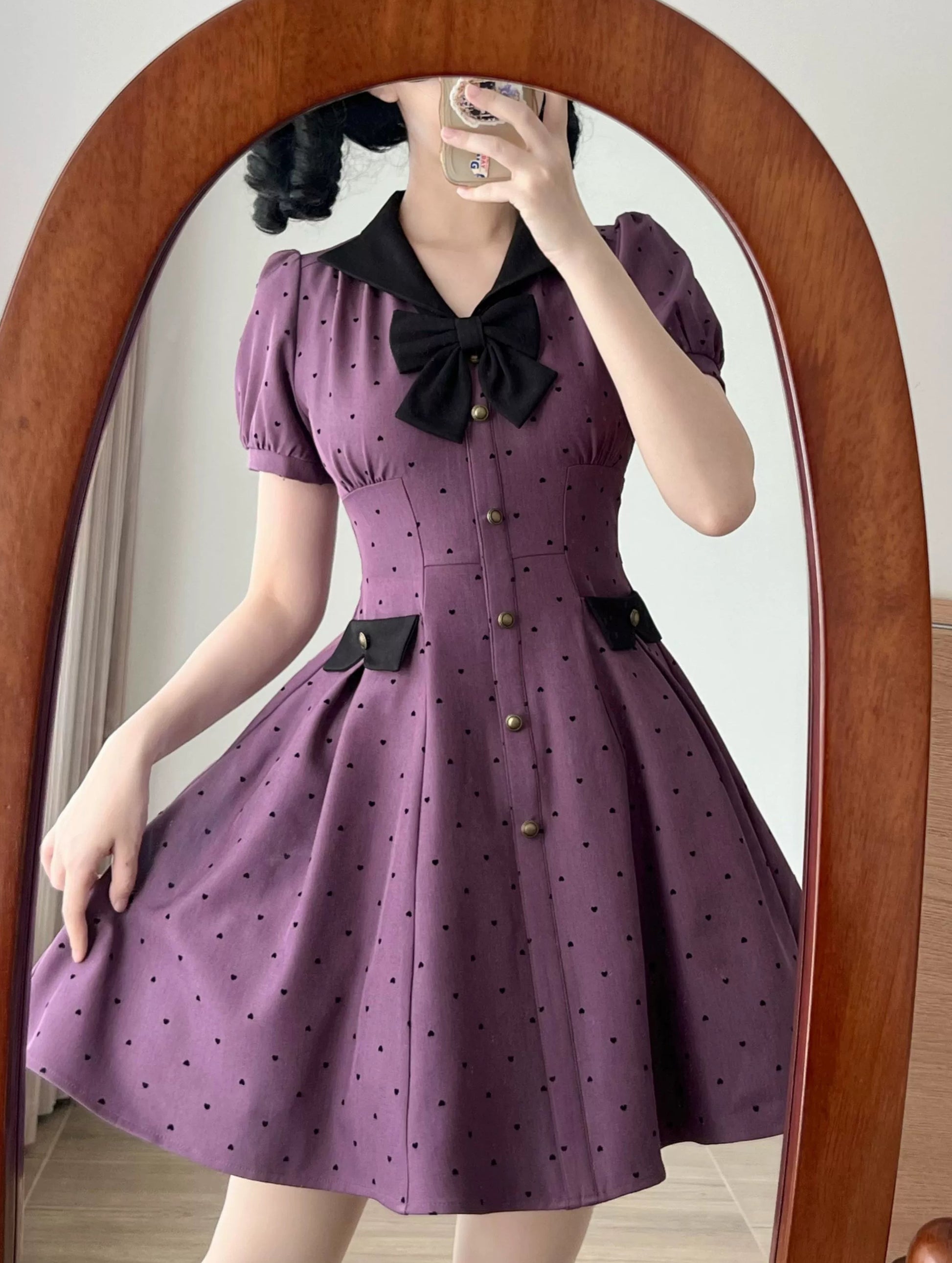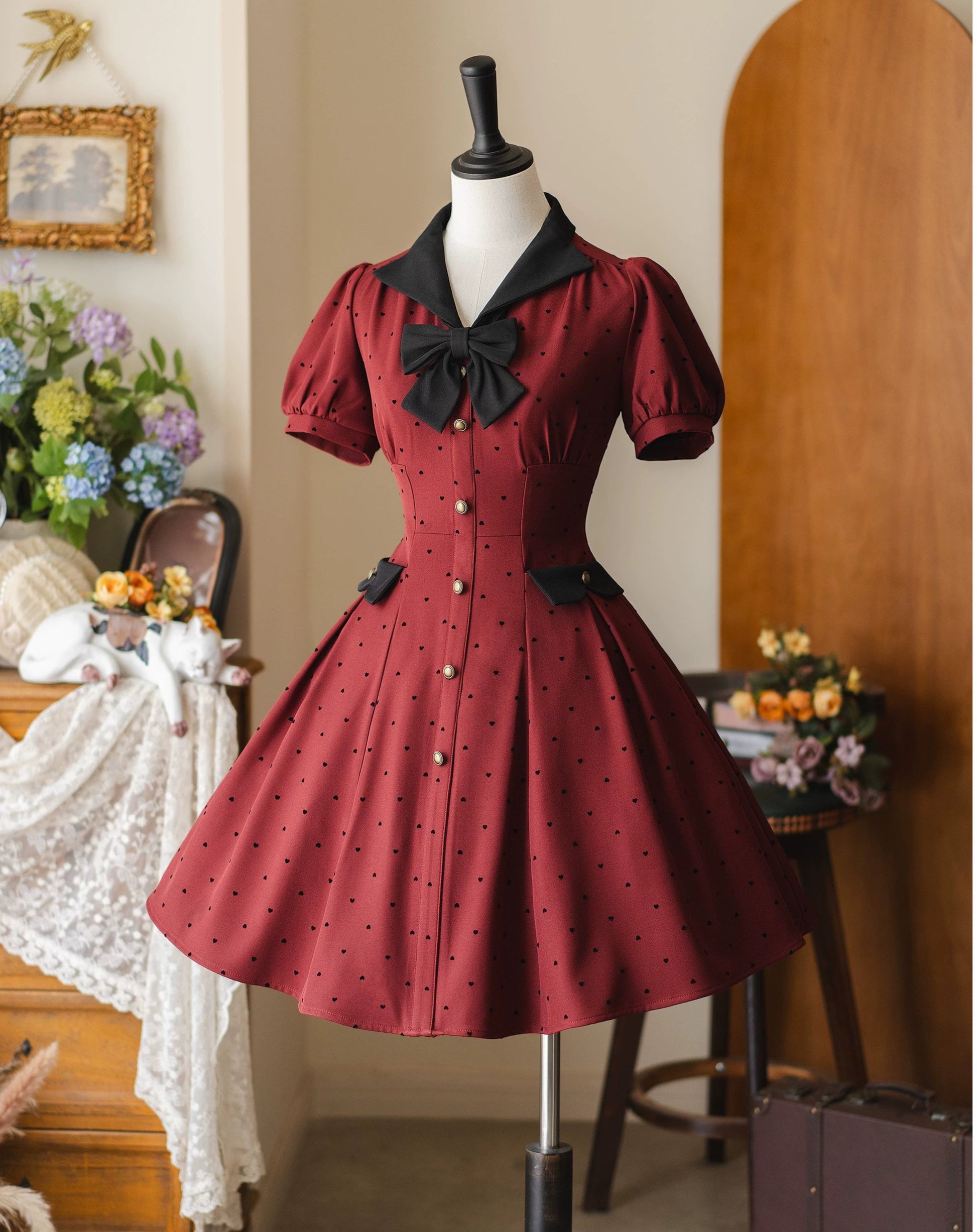 短めの着丈に小さなハートの水玉柄が可愛い半袖ワンピース。