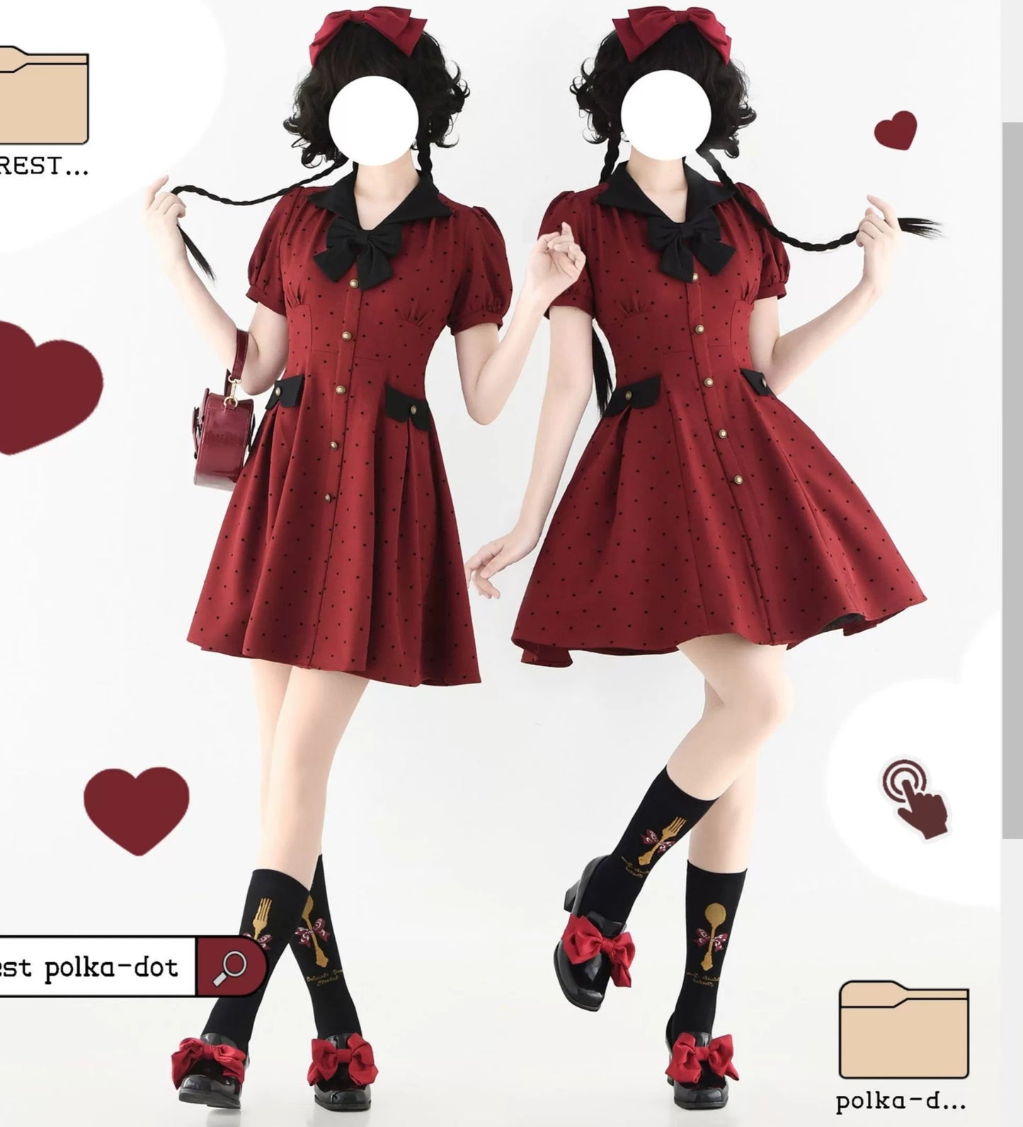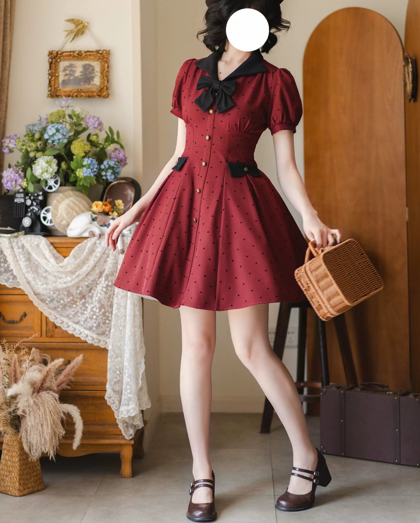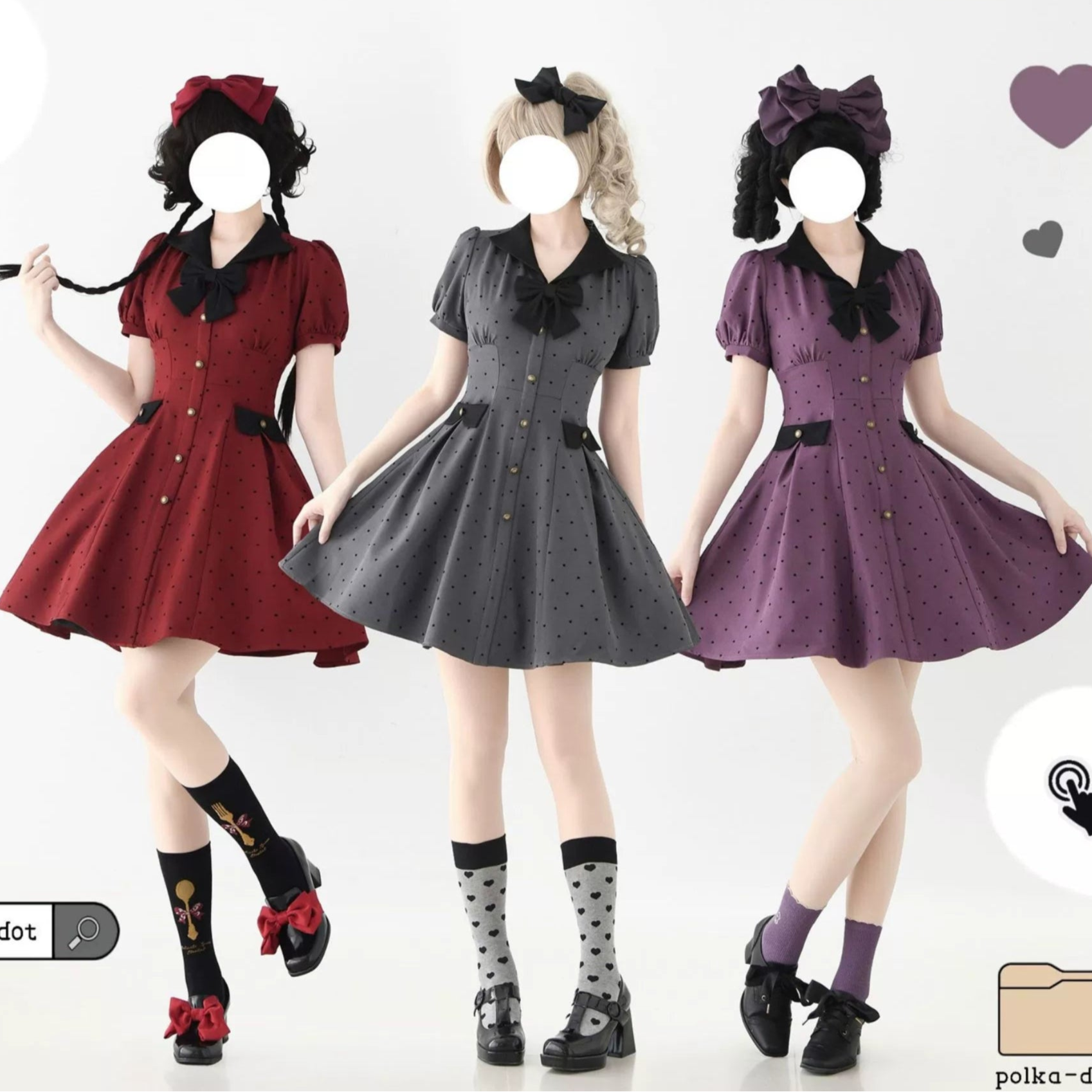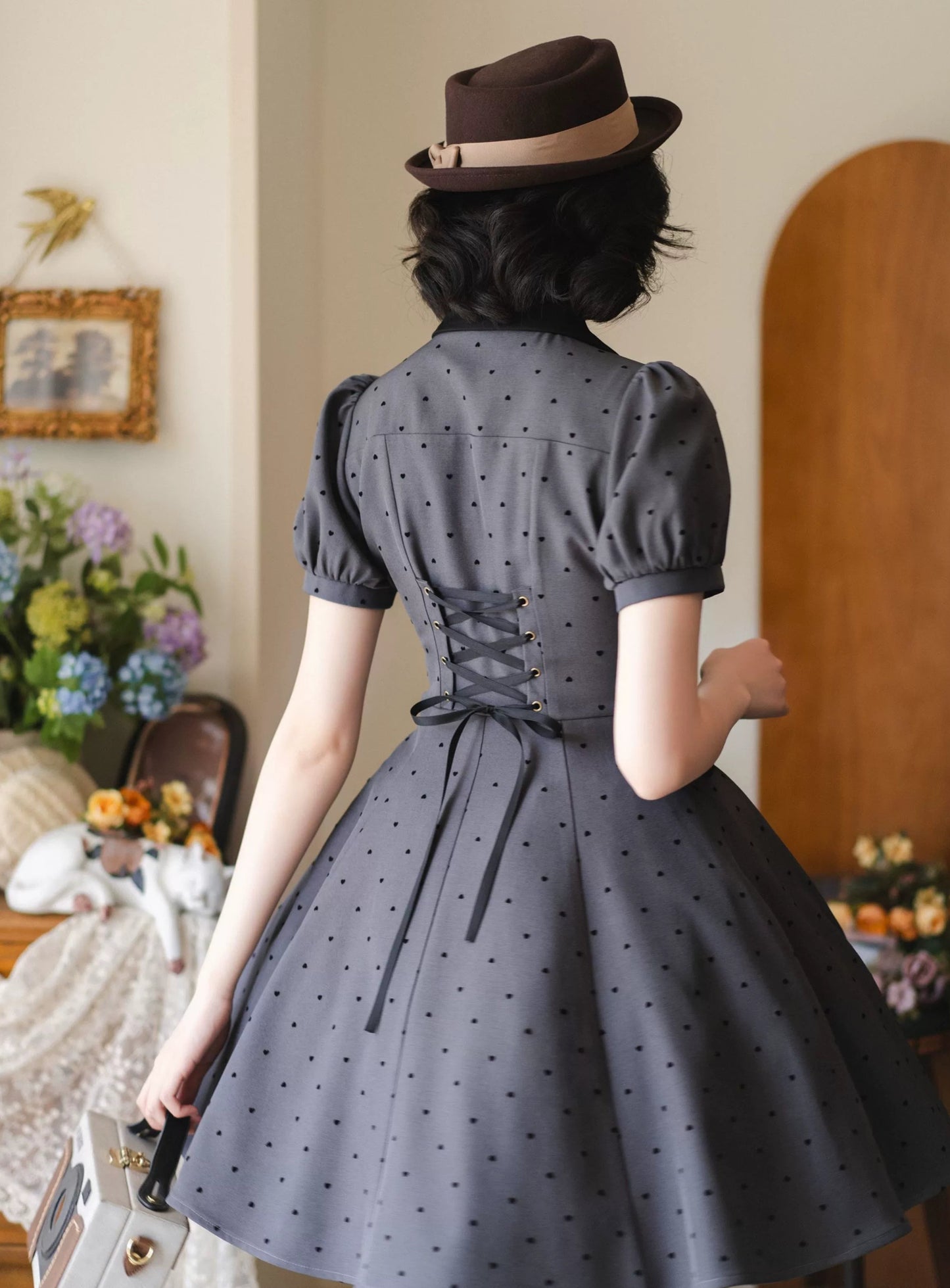短めの着丈に小さなハートの水玉柄が可愛い半袖ワンピース。