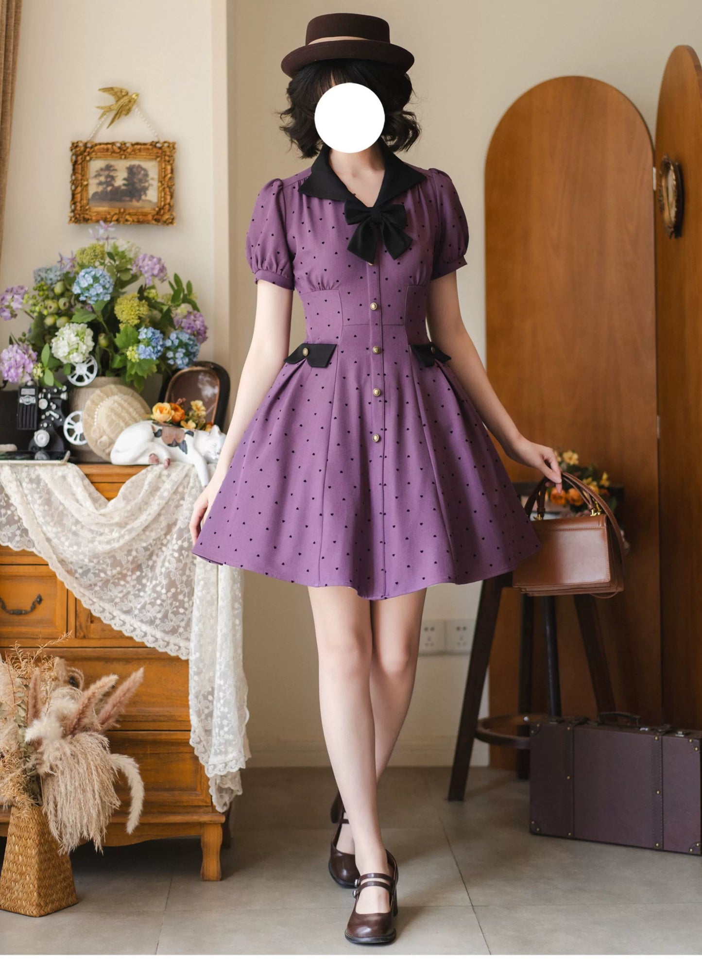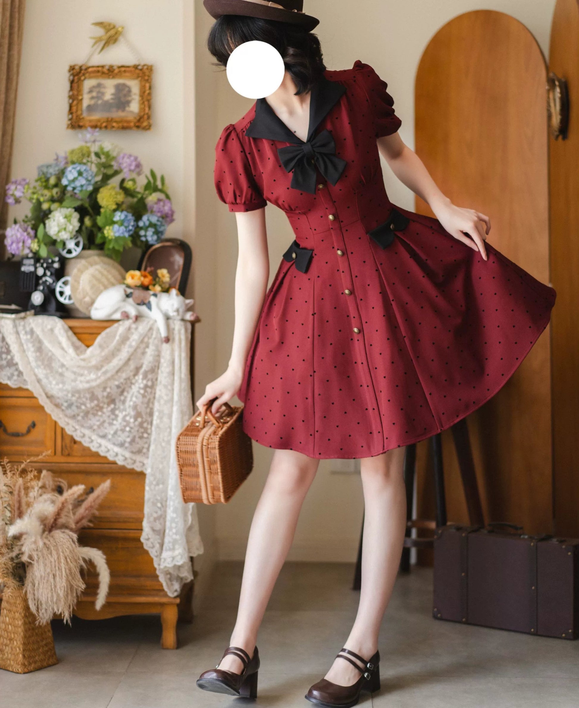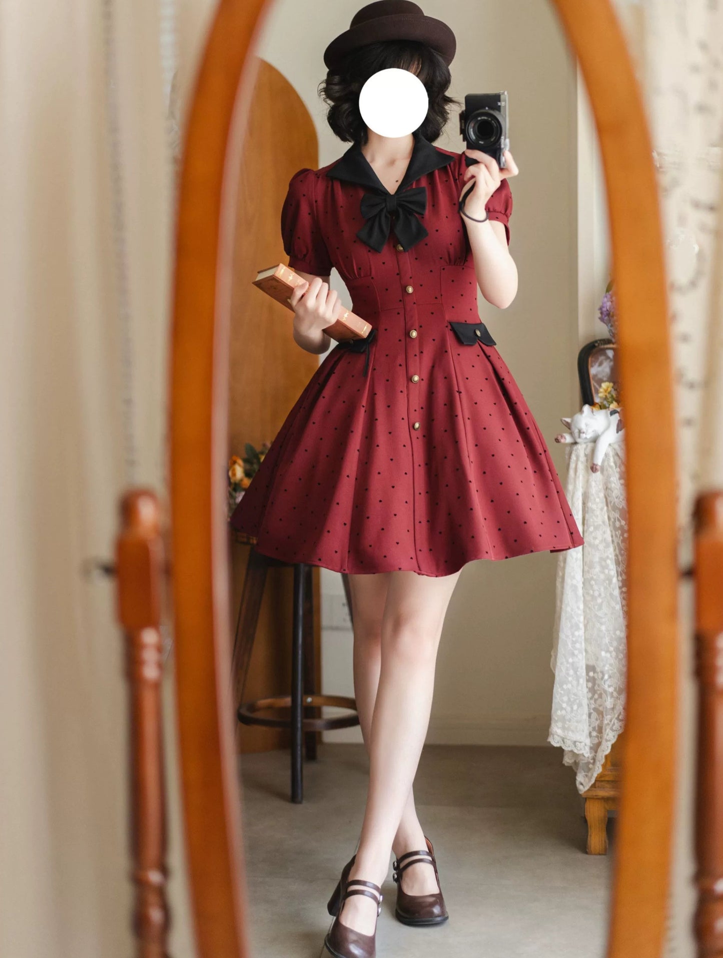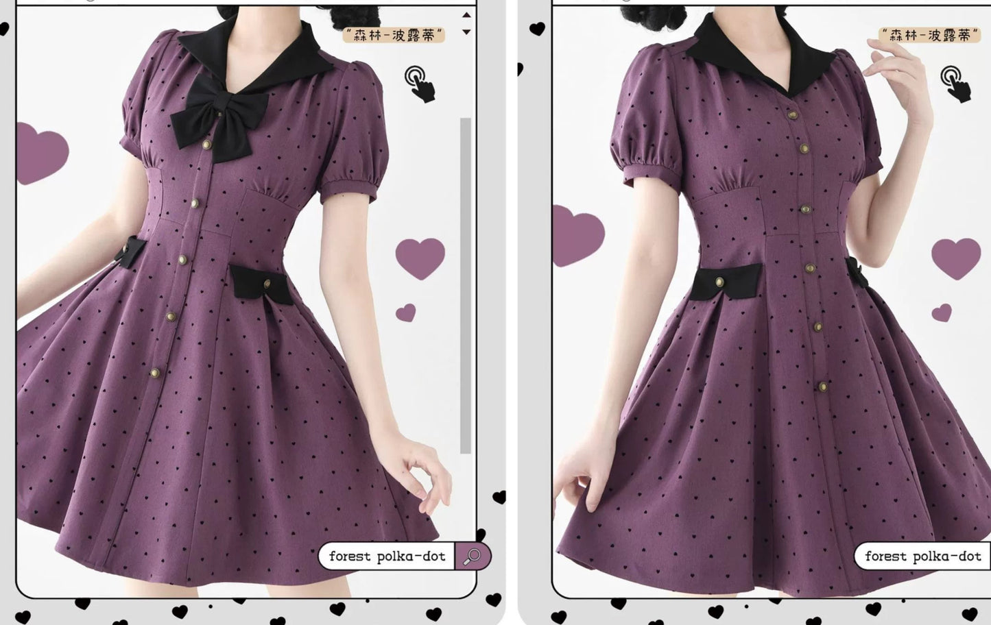 短めの着丈に小さなハートの水玉柄が可愛い半袖ワンピース。