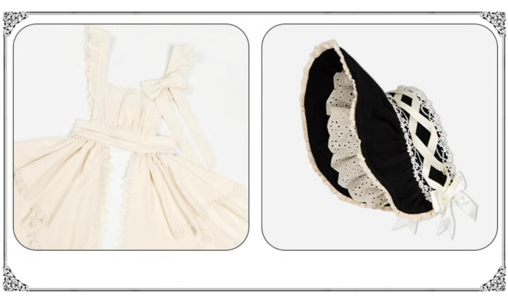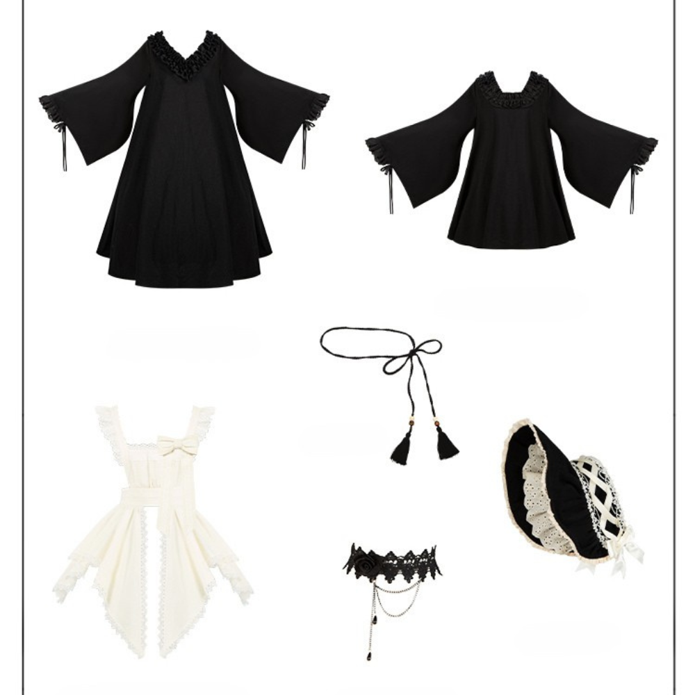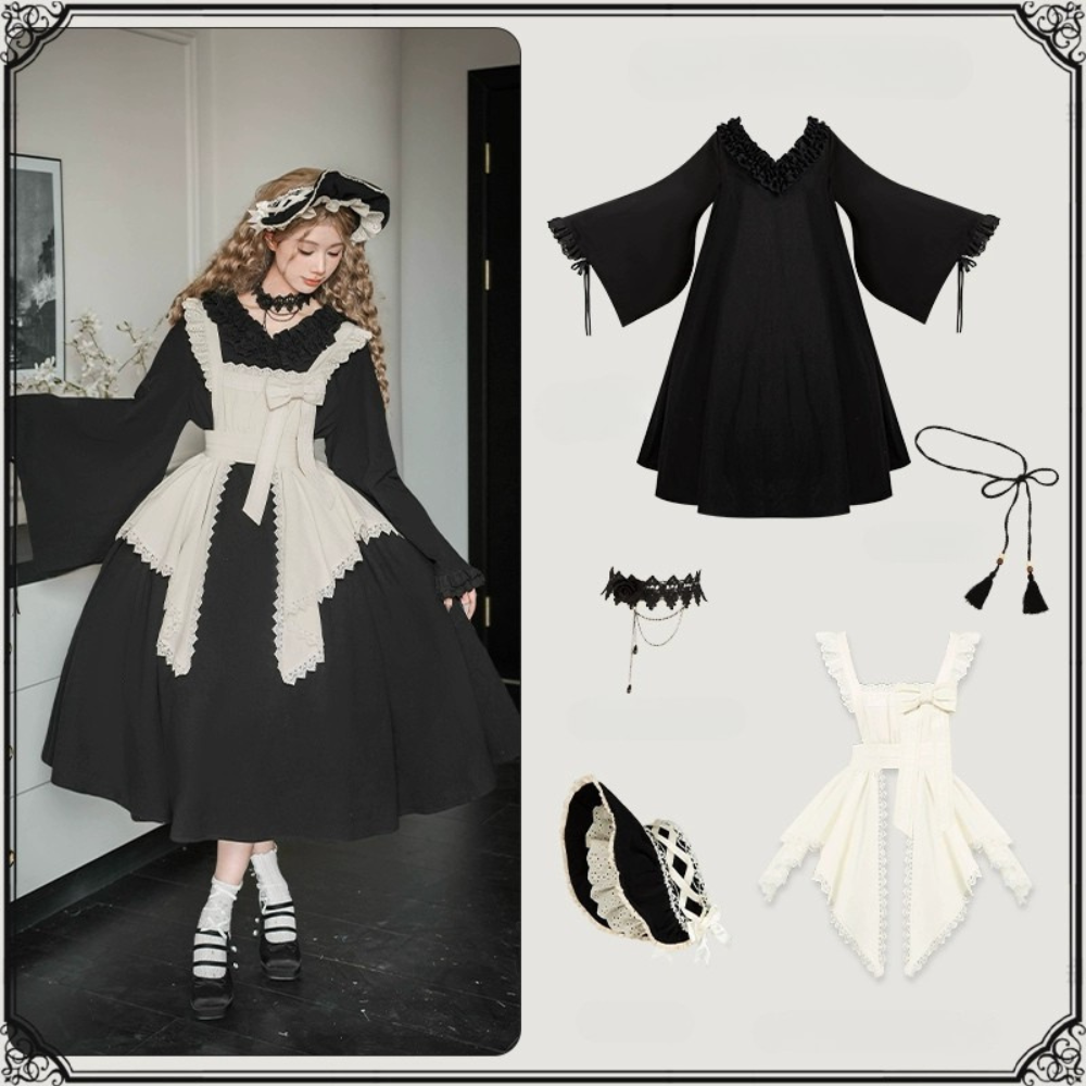 こちらのページはワンピース、エプロン、腰紐、ボンネット、チョーカーのみの販売となります。ネックレスその他は付属しません。