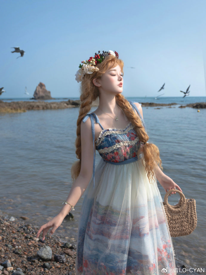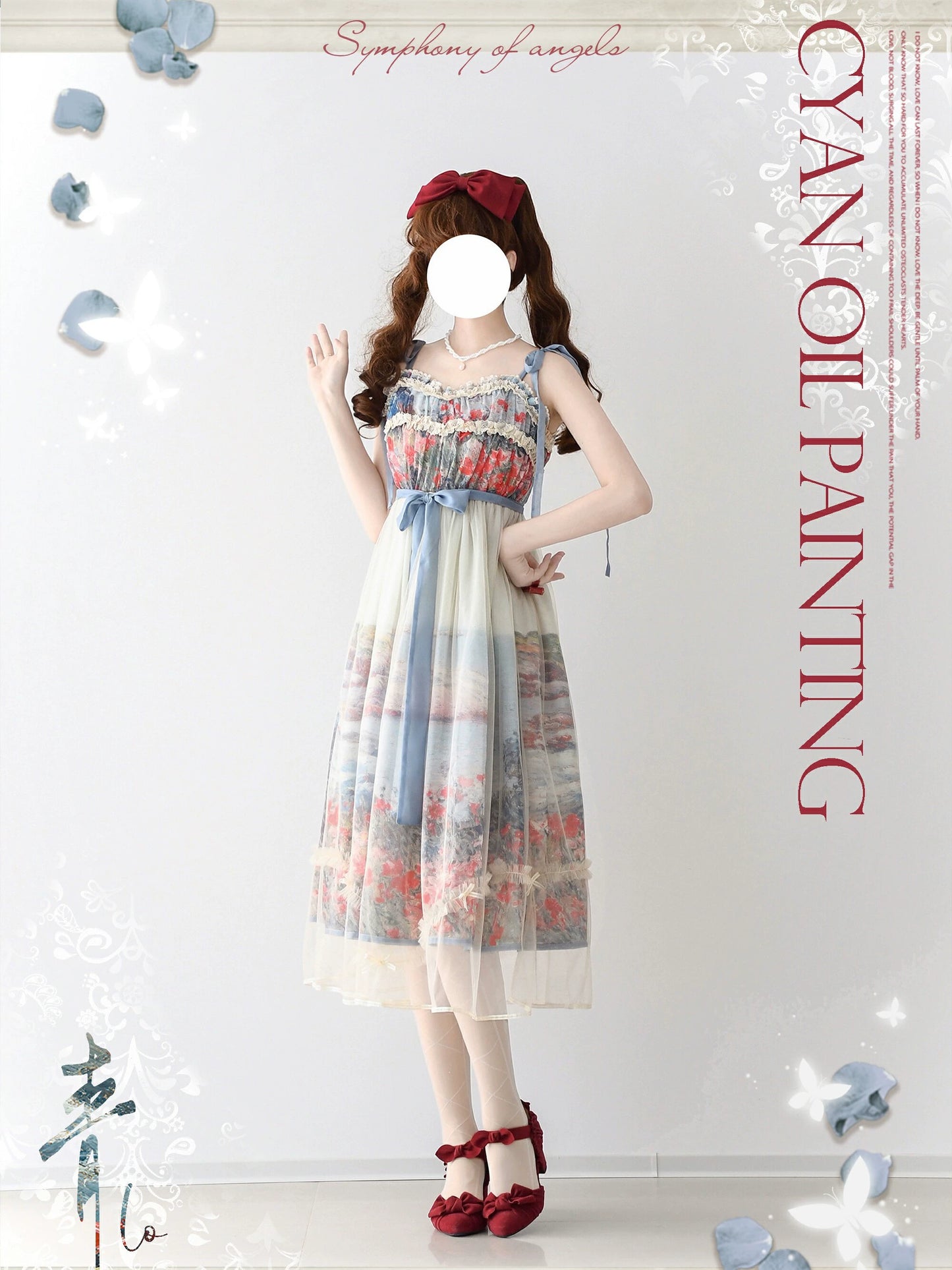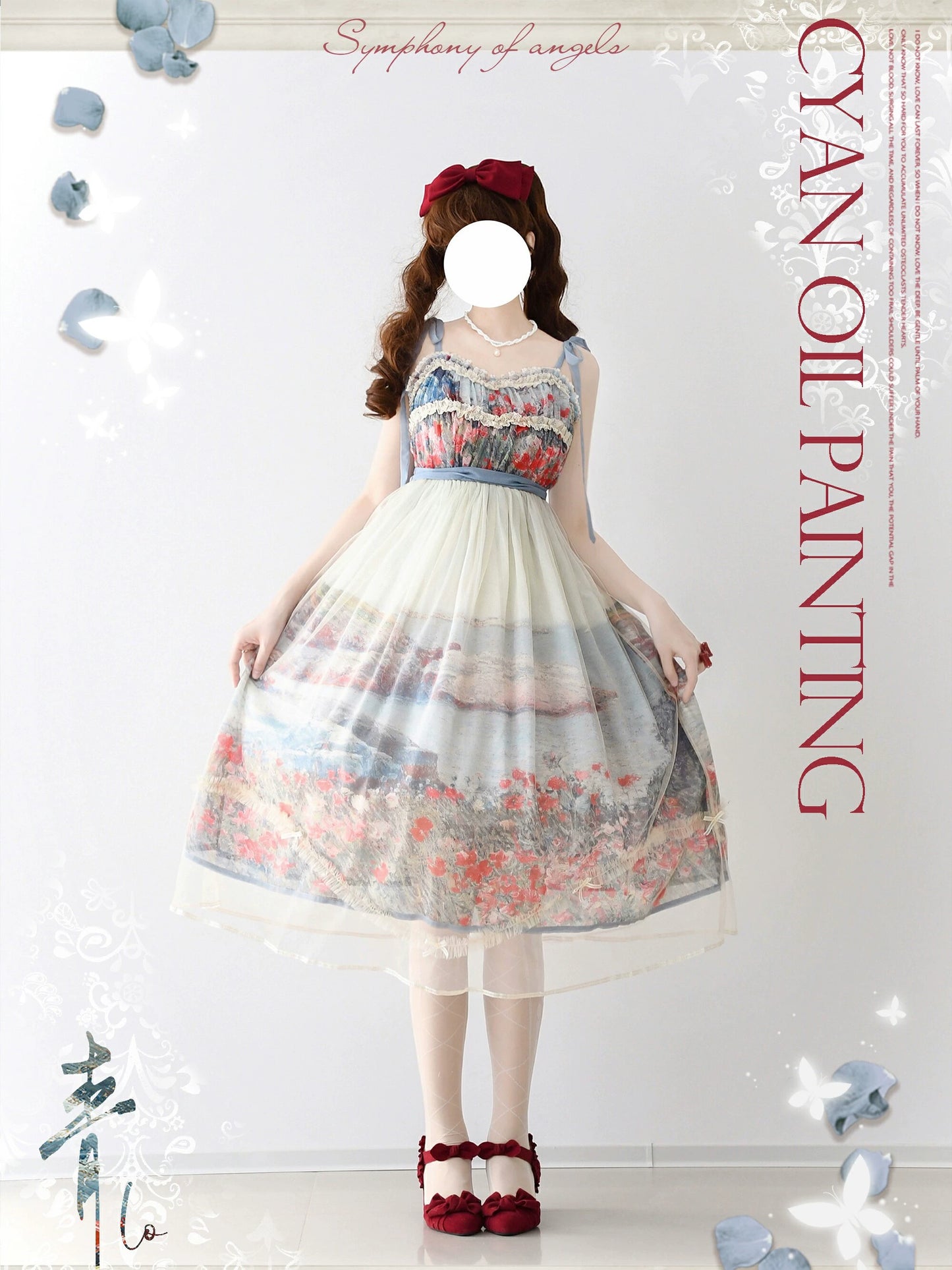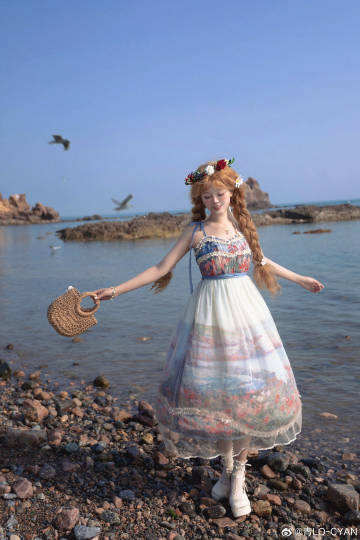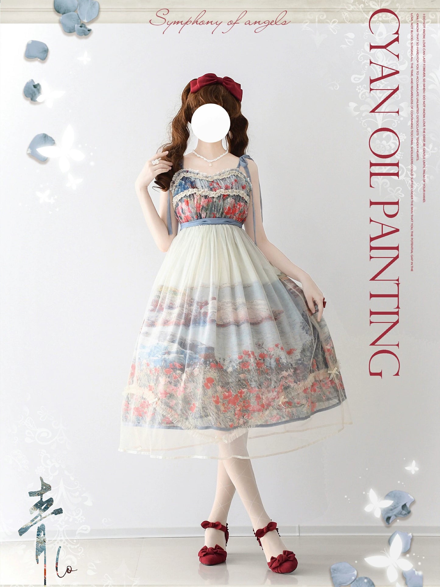 彩りあざやかな油絵を映した優雅なジャンパースカート。