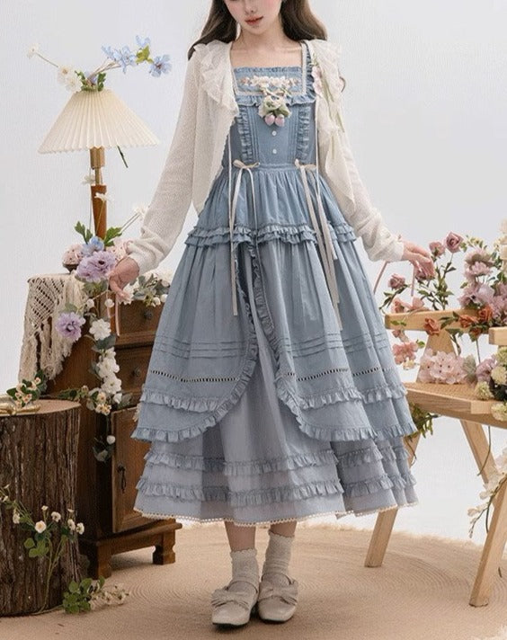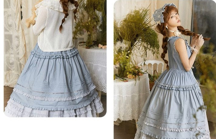 【限定特別価格】クラシカルリボンジャンパースカート・グレー +パニエ