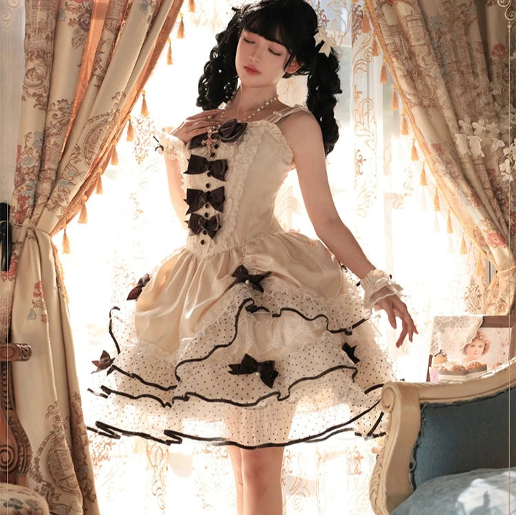 【限定特別価格】クラシカルリボンジャンパースカート・グレー +パニエ
