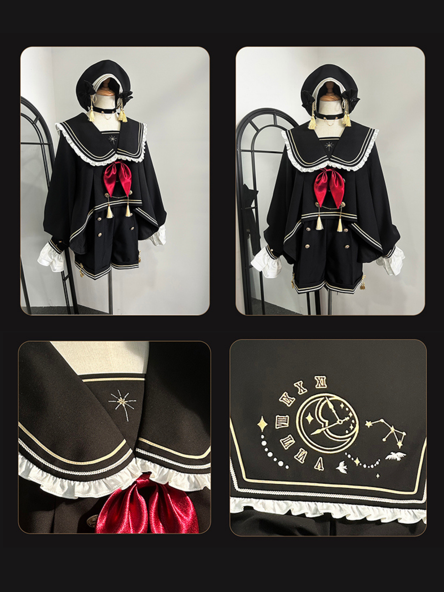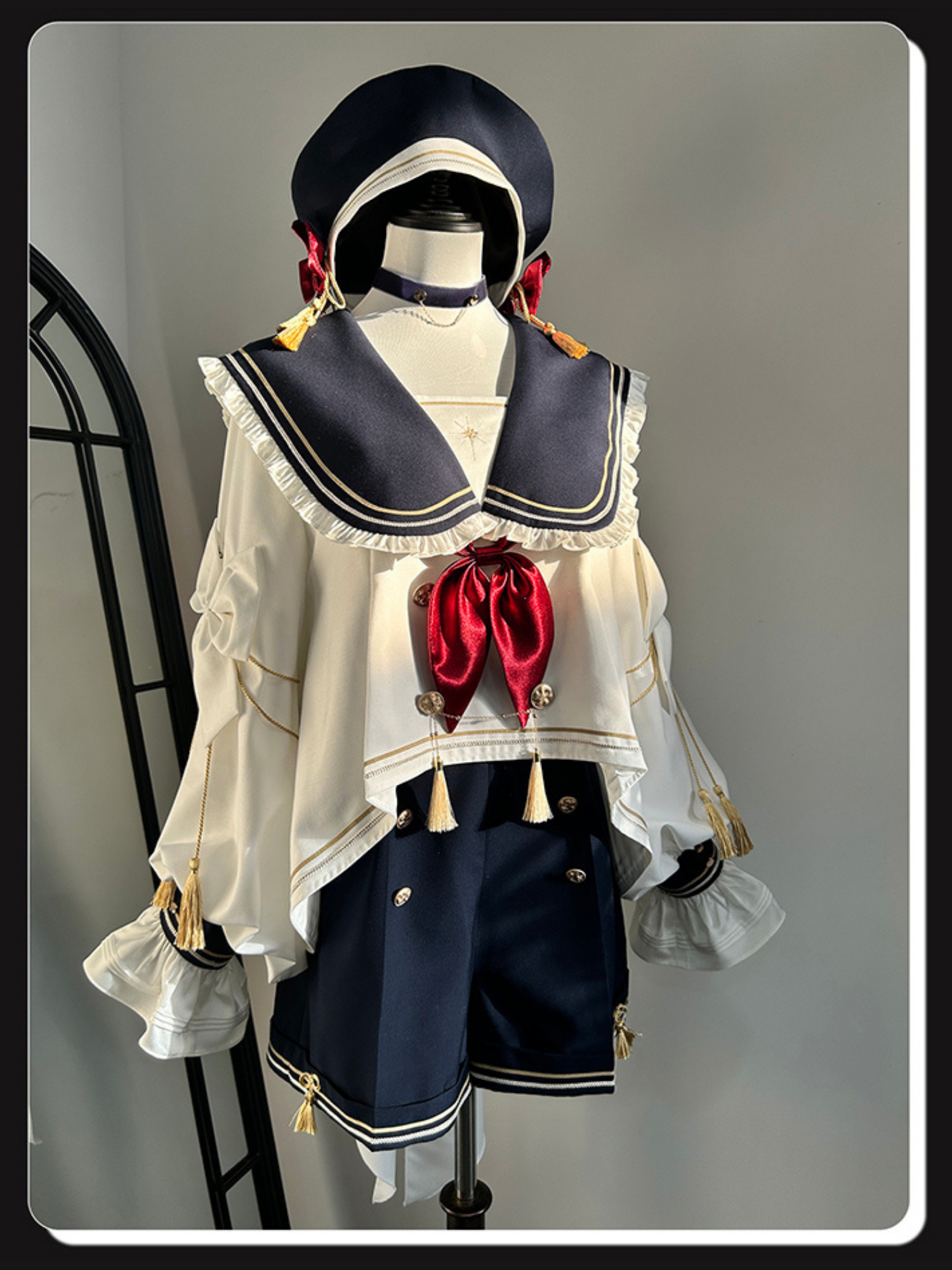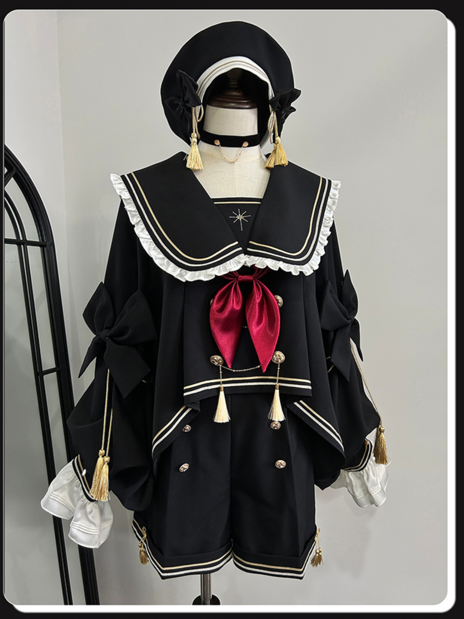 フリルのセーラー襟が水兵さんを思わせるセットアップ。