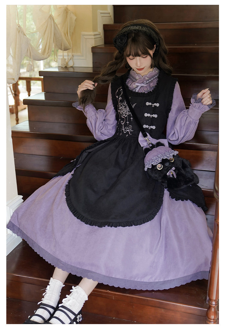 Sweet Moon 鈴蘭刺繍の華ロリエプロンとワンピース