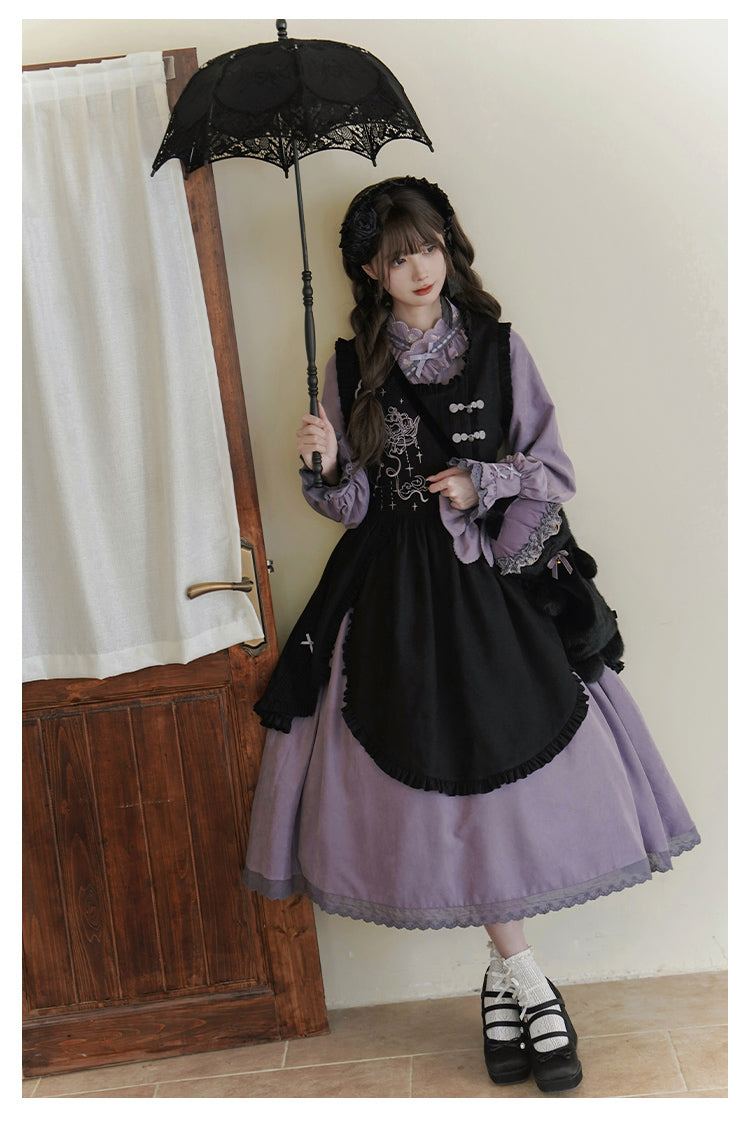 【予約販売】蛇と薔薇刺繍のシスター風ワンピースセット ロング丈