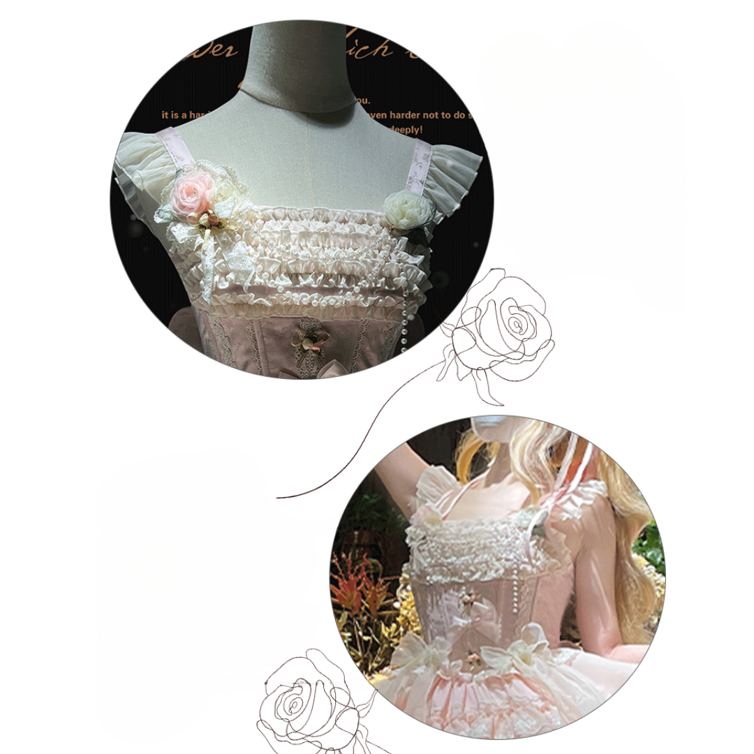 バラの涙 刺繍レースのミニ丈ジャンパースカート・ピンク