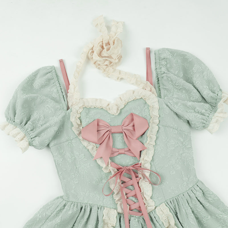 フリルのレースを首の後ろできゅっと結んだら、ガーリーな甘ロリコーデの完成です♡
