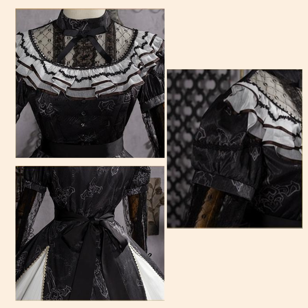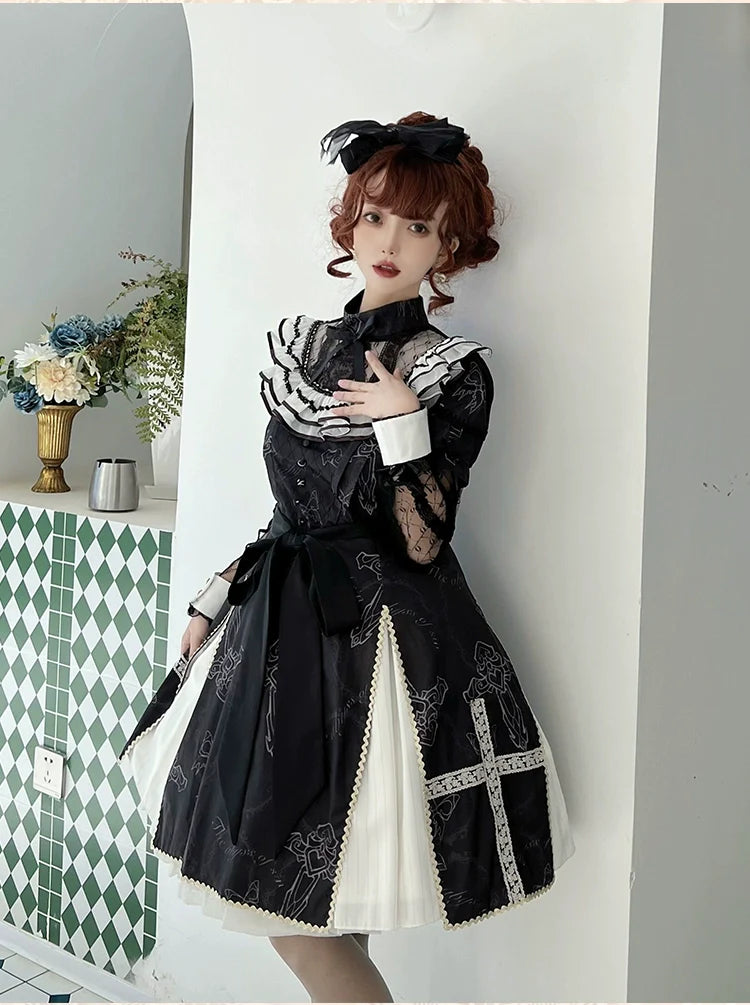 【予約販売】蛇と薔薇刺繍のシスター風ワンピースセット ロング丈